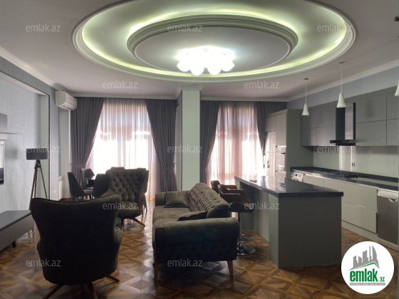 H.Əliyev pr. 79/2. 8 mərtəbəli binanın 7-ci mərtəbəsi 3 otaq, 110 kv.m əla təmirli mənzil 2 sanuzel, mətbəx mövcuddur Aylıq Kirayə 1 200 AZN