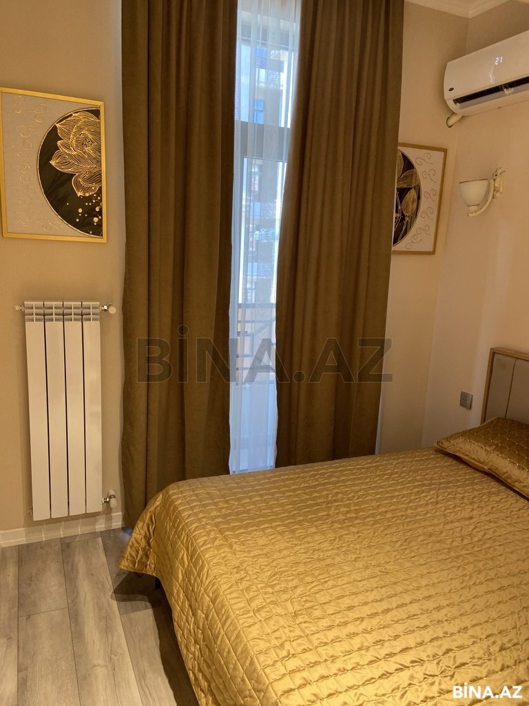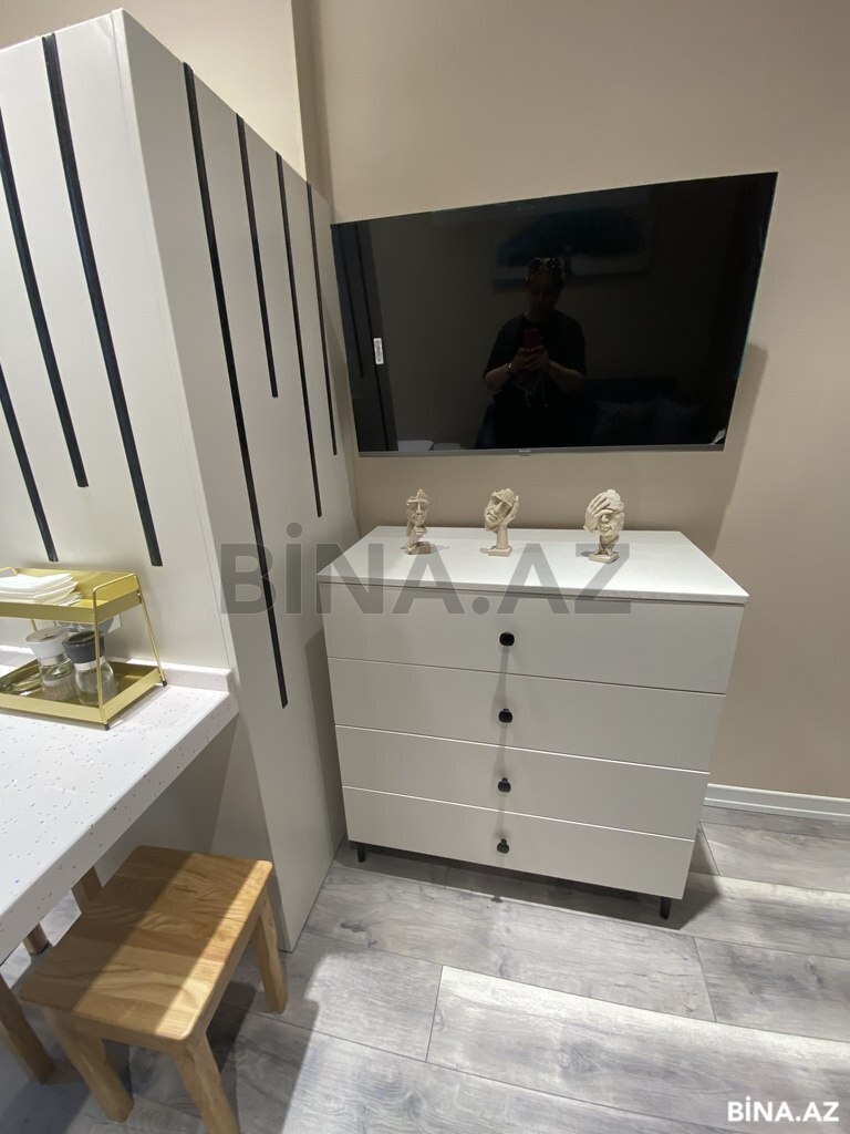 Təzə təmirdən çıxan mənzil kirayə verilir. Mənzildə hər cür avadanlıq var, qaz, su, işıq daimidir. İkinəfərlik çarpayı, ikinəfərlk divan, mətbəh üçün qabqacaq,paltaryuyan, qabyuyan, mikrosoba, toster var. İstilik sistemi kombidir. 1 ya 2 nəfər üçün şəraitli və rahat mənzildir. Binada iki sürətli lift var. Сдаётся квартира в новостройке со свежим ремонтом. В доме есть все необходимое оборудование, газ, вода, свет постоянно. Двухместная кровать, двухместный диван, кухонная и столовая посуда, стиральная и посудомоечная машины, микроволновая печь, тостер есть в наличии. Система отопления-комби. Квартира со всеми условиями и удобствами рассчитана на 1-го или 2-х квартирантов. В здании два скоростных лифта.