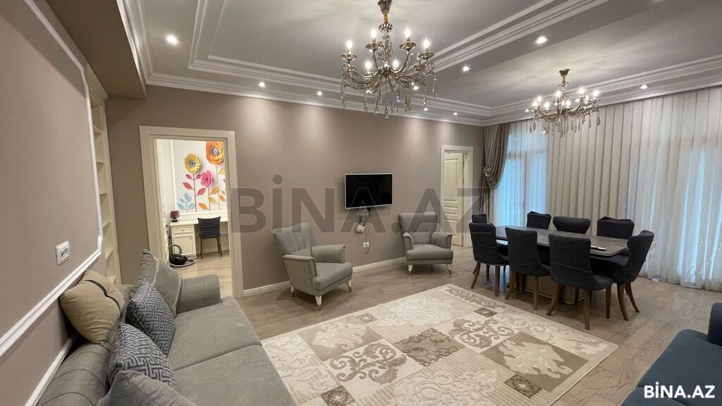 Şəhərin elit yerlərindən olan Elmlər Akademiyası m/st yaxınlığında, Nazirlər Kabinetinin əməkdaşları üçün tikilmiş binada, yüksək keyfiyyətli materiallardan istifadə olunmuş əla təmirli 4 otağa düzəldilmiş mənzil əşyalarıyla birlikdə satılır. Mənzil 3-cü mərtəbədə (yaşayışın 1-ci mərtəbəsi) yerləşir, sahəsi 140 kv/m, 3 yataq otağı, 1 zal, 2 sanuzeldən ibarətdir, İsti pol və kombi sistemi mövcuddur. Mənzildən birbaşa binanın geniş terrasına çıxışı var və mənzil sahibinin istifadəsinə icazə verilib. Əlavə olaraq mənzilə məxsus və qiymətə daxil yeraltı qarajın 1-ci mərtəbəsində liftə yaxın yerləşən parkinqi da var. Yaşayış kompleksinə 2 ayrı küçədən giriş-çıxışı və ətrafında digər elit yaşayış kompleksləri var. Aylıq 1500 manata icarəyə vermək mümkündür.