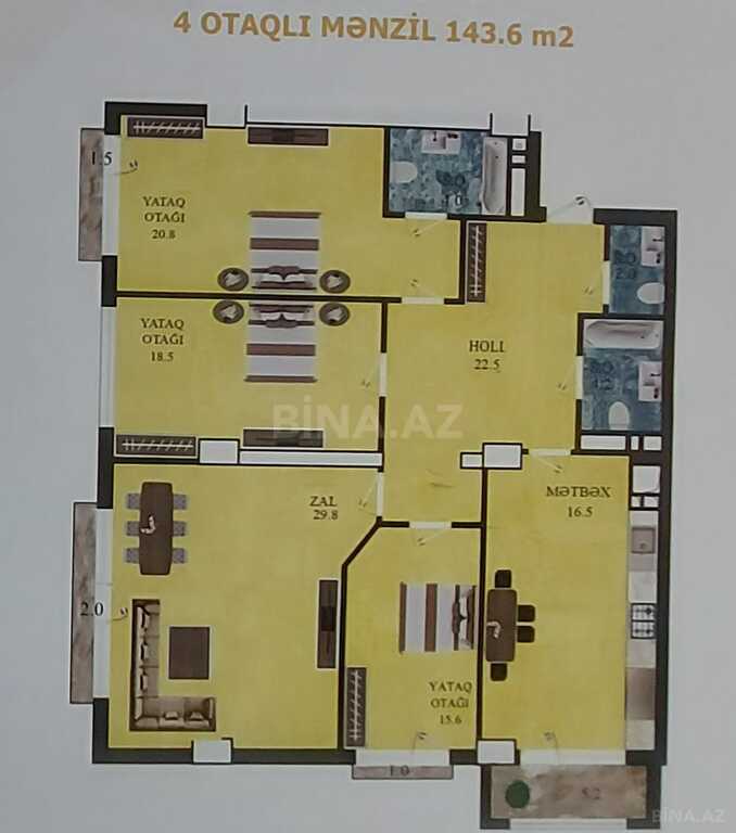 28 May metrosu, Satılır 4 otaqlı 144 m² Yeni tikili