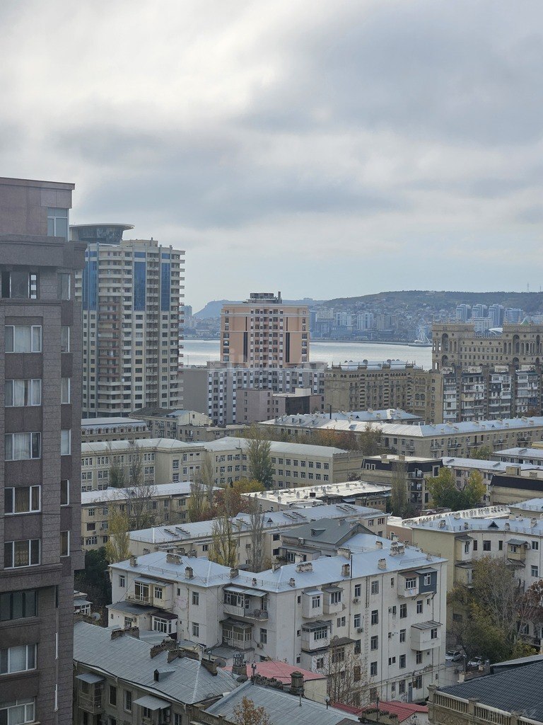 В центре, рядом с набережной, охраняемый двор, централизованное отопление, свежий качественный ремонт: 3-с/узла.3 спалини, оборудована техникой, конденционерами, терасса с видом города и моря. Ela temir, merkezi isitme, gozel menzere sehere, denize. 3-s/qovsagi, 3 yataq otagi.