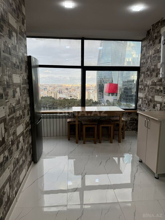 Mənzil Milli Məclisin arxasında, Flame Towers istiqamətində yerləşir. Digər otaqlardan ayrı mətbəxi, uşaq otağı, geniş qonaq və yataq otağı var. Sanitar qovşağı və hamam ayrı-ayrıdır. Məişət əşyaları və elektrik cihazları yeni alınıb, istifadə olunmayıb. Yeni təmirlidir və təmirdən sonra yaşayəş olmayıb. Sakit və ailə ilə yaşamaq üçün uyğun binadır. İstilik mərkəzidir. Yalnız ailələrə kirayəyə verilir