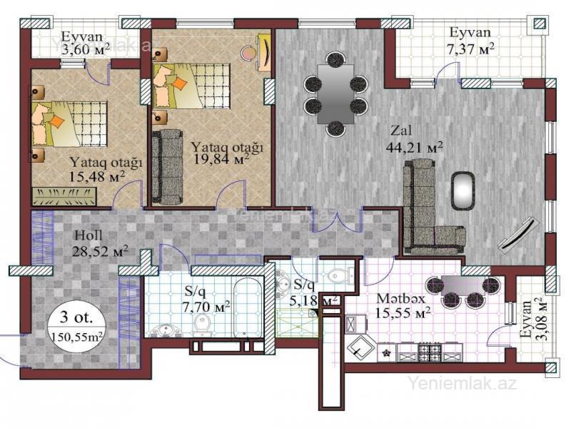 Nəsimi rayonu Zabitlər parkının yanında 16 mərtəbəli Yeni tikilinin 14-ci mərtəbəsində ümumi sahəsi 151 m² sahəsi olan 3 otaqlı təmirsiz (podmayak) mənzil təcili satılır. Yaşayış kompleksi on altı mərtəbəli hündürlüyü olan dörd monolit-çərçivəli evlərdən ibarətdir. Yeni tikilinin dam örtüyü metalkirəmitlə örtülüb və qədim Avropa şəhər-qala üslubunda şpillər ilə bəzədilib Fasadlar aqlay daş və keramik kərpiclə üzlənib və izolyasiya boya örtüyü ilə işlənib. Binalar ağ və boz rənglərlə boyadılıb. Binaların təchizatı yerinə yetirilir: hər korpusda iki ədəd səssiz sürətli liftlər; ehtiyat elektrik generatoru ilə qəza elektrik təchizatı sistemi; mərkəzi və fərdi istilik; zəruri mühəndis kommunikasiyaları, o cümlədən qaz kəməri; domofon sistemi. Həyətyanı ərazisi Yaşayış kompleksinin ərazisi kənar şəxslər üçün bağlanıb, burada mühafizə xidməti fəaliyyət göstərəcək, videomüşahidə kameraları quraşdırılacaq. Avtomobil və piyada yolları boyunca binaların xarici görünüşü ilə uyğun olan küçə fənərləri quraşdırılır. Yeni sakinlərin avtomobilləri üçün geniş yeraltı parkinq tikilir, qonaq nəqliyyatı üçün isə yerüstü dayanacaq nəzərdə tutulur. Evlərin birinci mərtəbələrində mağazalar, spa-salon, fitnes zalı fəaliyyət göstərəcəkdir. Kompleksin öz məktəbi və uşaq bağçası da olacaqdır. Ətraflı Tel. Şirkətin xidmət haqqı 1%.Ağadadaş Qurbanov küçəsi.Nəsimi rayonu Zabitlər parkının yanında 16 mərtəbəli Yeni tikilinin 14-ci mərtəbəsində ümumi sahəsi 151 m² sahəsi olan 3 otaqlı təmirsiz (podmayak) mənzil təcili satılır. Yaşayış kompleksi on altı mərtəbəli hündürlüyü olan dörd monolit-çərçivəli evl.