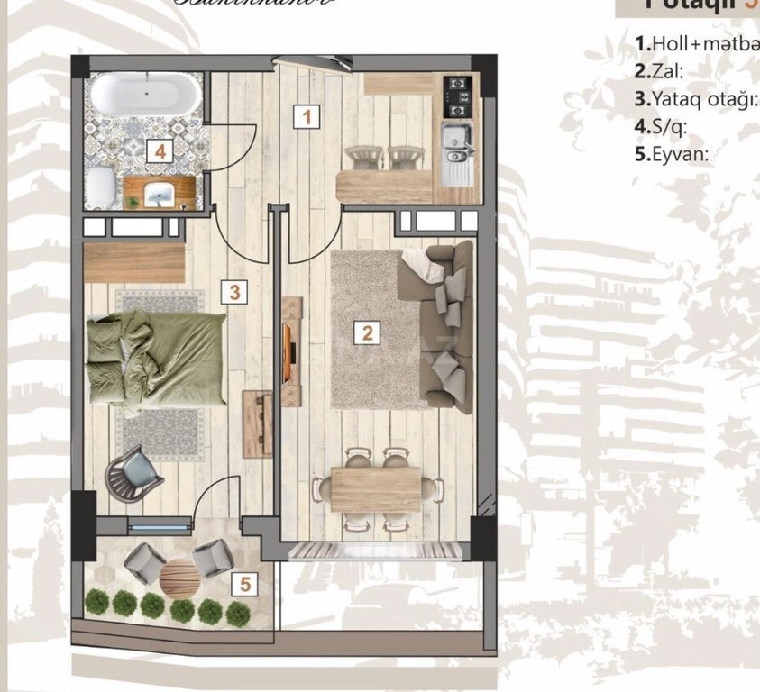 1 otaqlı yeni tikili