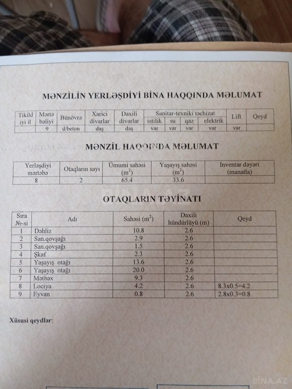 Elmlər Akademiyası metrosuna 5 dəqiqəlik məsafədə Mənzil + Mansard satılır Ünvan: İsmayıl Qutqaşınlı küçəsi, Geoloqların binası Bina: 8 mərtəbəli, monolit-beton, karkas daş bina Mənzil: 2 otaqlı – 65.4 m² Mansard: 1 otaqlı – 35 m² Qiymət: 250.000 AZN (razılaşma mümkündür) Mənzil haqqında 2 otaq: mətbəx, yataq otağı, qonaq otağı, dəhliz və hamam Asanlıqla 3 otaqlı geniş mənzilə çevirmək mümkündür Mənzilin texniki pasportunda 65.4 m² qeyd olunub Mansard ayrıca girişlidir və kooperativ tərəfindən istifadə icazəsi təsdiqlənib Mansard haqqında 35 m²: dəhliz, mətbəx, otaq, hamam və balkon Tam yaşayış üçün yararlıdır Hal-hazırda aylıq 330 AZN-ə kirayə verilib Yeni alıcı istəsə, icarə müqaviləsi ona ötürülə bilər Stabil gəlir gətirən investisiya obyekti Əlavə üstünlüklər Hər iki tərəfdə pulsuz parkinq 24 saat kamera nəzarəti Sakit və mədəni qonşular Hüseyn Cavid parkı və Mərkəzi park arasında yerləşir Yaxınlıqda Nazirliklər: Ekologiya, Vergilər, Gömrük, Ədliyyə 1 saylı DOST Mərkəzi, FHN, təcili yardım Məktəblər və liseylər: 175, 176, 20, 53, 21-ci əsr, A.N.Ələkbərova gimnaziyası Uşaq bağçaları, Prestij Med, German Hospital, Nur Stomatoloji Banklar: ABB, Kapital Bank, Xalq Bank, Azər-Türk Bank, Yellow Bank BDU, AzMİU, Politexnik, İncəsənət və Mədəniyyət Universiteti Barter mümkündür rayonda, təbiətin qoynunda həyət evi ilə barter mümkündür. rayonda yerləşən həyət evi ilə, alıcının təklifindən asılı olaraq üstündə pul vermək şərti ilə dəyişdirilə bilər. --- WhatsApp daima aktivdir Qiymət: 250.000 AZN (razılaşma mümkündür) Mənzil + Mansard = ümumilikdə 100.4 m²