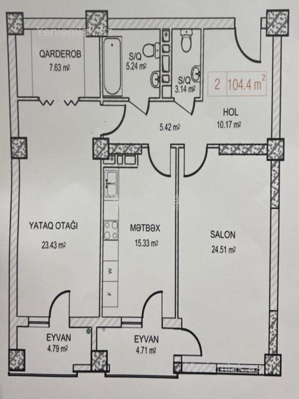 Xətai metrosu, Satılır 2 otaqlı 104 m² Yeni tikili
