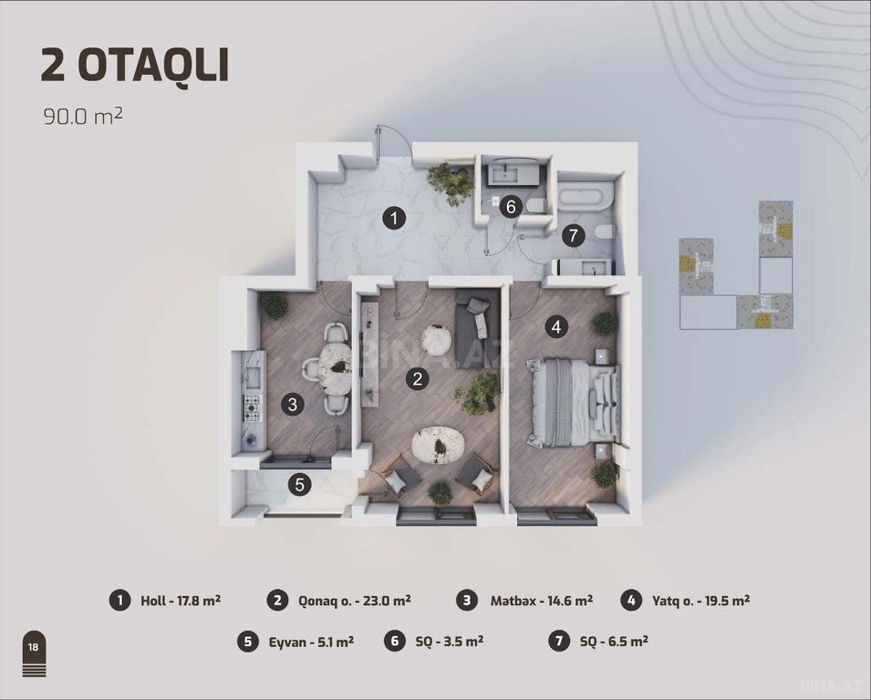 Marin qrup Mtk 2 otaq 90 kvm mənzilin görnüşü şəhərə di