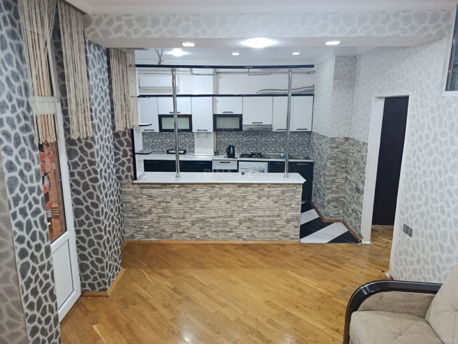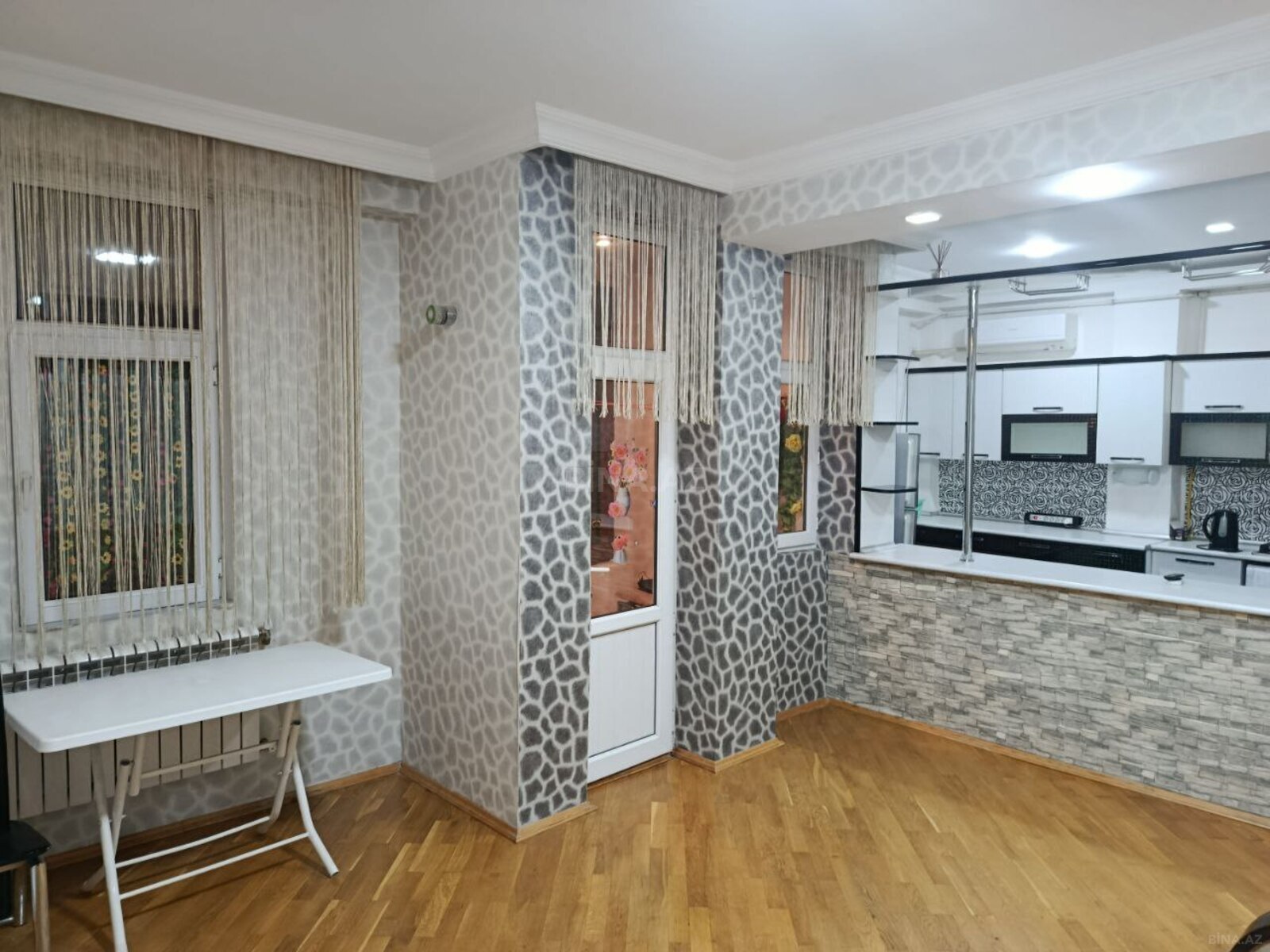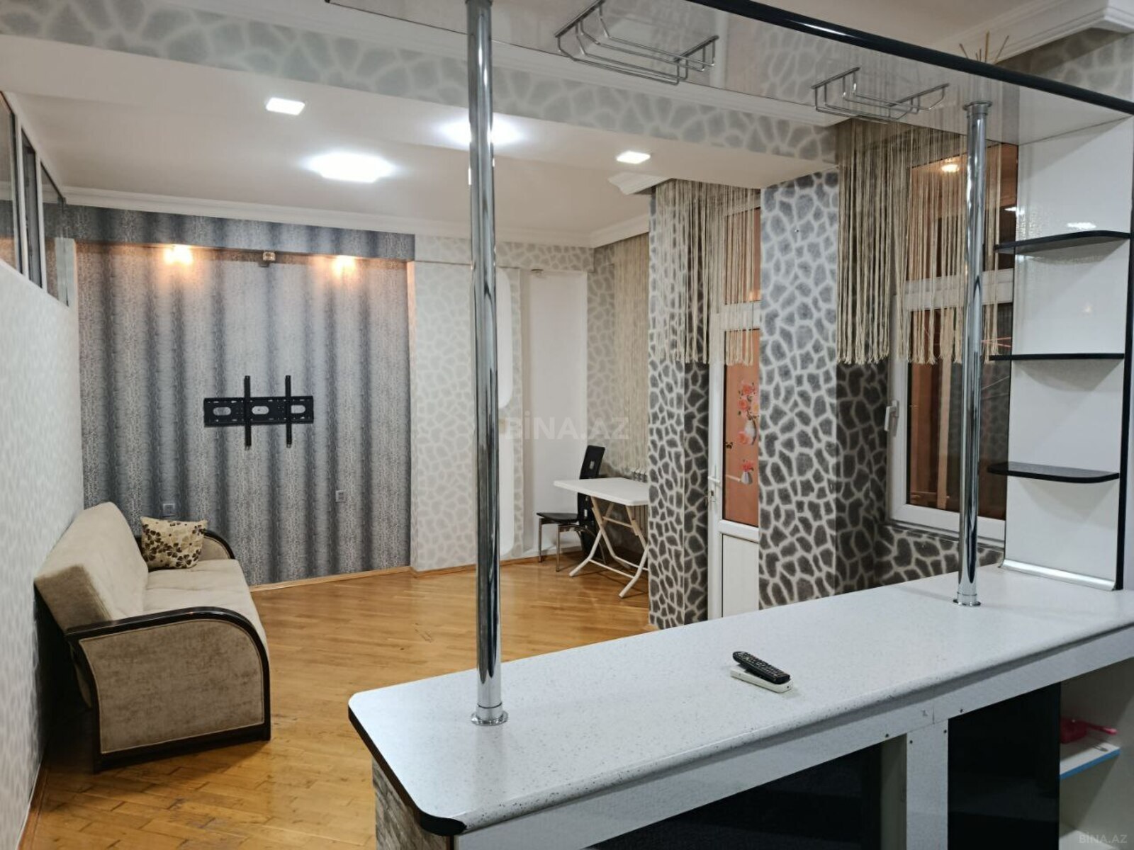 1 otaqdan 2 yə düzəlmə,ümumi sahəsi 50kvm Mənzil bayılın mərkəzində,su idman sarayı ilə üz üzə,bulvara 5 dəqiqəlik ərazidə yerləşən tək bloklu yeni tikilidə 2 ci mərtəbədə yerləşir.Mənzildə Kombi,Kondisioner,Tv,İnternet,Açilan divan,1 ədəd böyük yataq çarpayısı,stol,stul,qardirob,yataq otaqi şvaneri,metbex mebeli,paltaryuyan,elektrik çaynik ve sair mövcuddur.Mənzil yanlnız ailəyə nigah kağızı əsasında verilir.