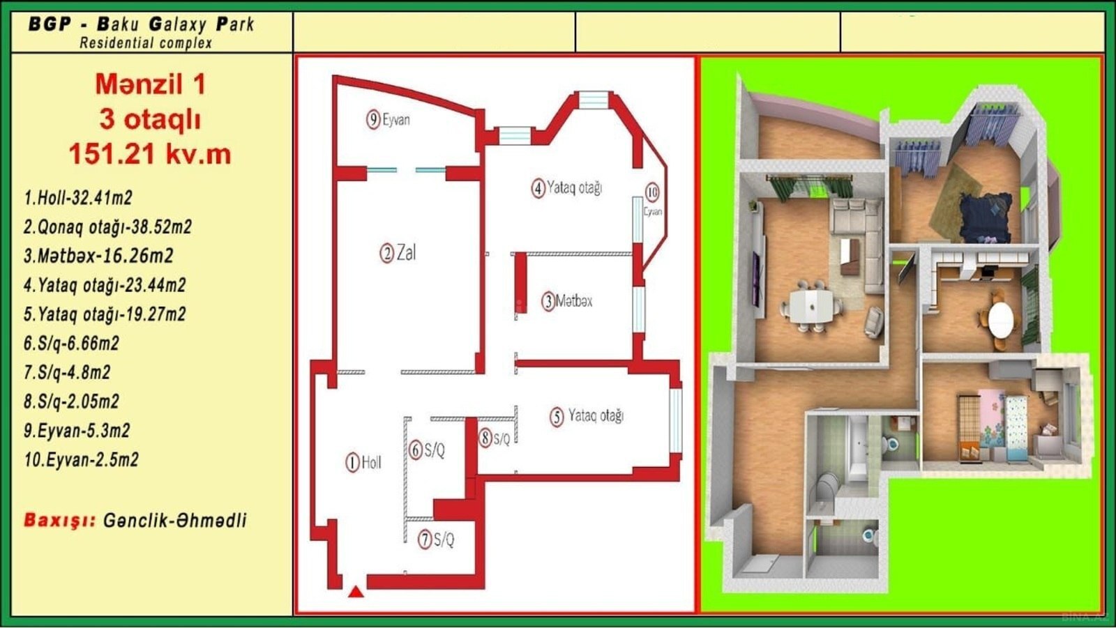 Ünvan:Bakı.28-May metrosu Səməd Vurgun parki Port-Baku yaxin GALAXY-PARK yaşayiş kompleksi QAZ-la təhciz olunub çox çox əla təklif qiymət. 420.000 AZN. növ. YENİ TİKİLİ. 15/7 mərtəbəsi otaq sayı. ( 3 ) ümumi sahə. 151.2kv. təmir. təmirsiz (pod mayak) 2 sürətli lift.Təmiz blok Yeraltı qaraj. Böyük həyət. uşaq meydani 24 saat mühafizə. Müşahidə kameraları. yaxında. Market. Məktəb. əlavə sual üçün zəng xidmət. 1%. başlanğıc qiymət. 420.000 azn