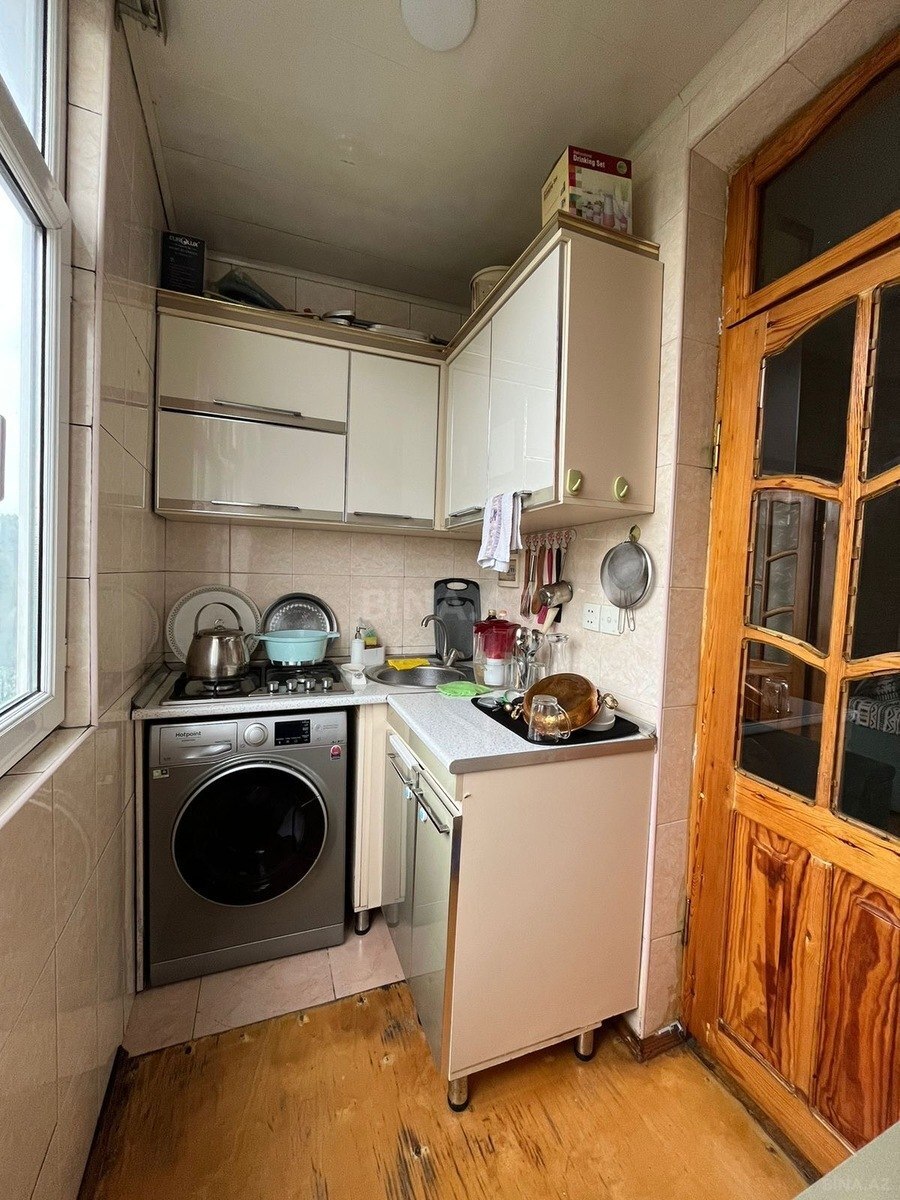Binəqədi r, 7 mkr, Abay Kunannayev küçəsində 5 mərtəbəli binanın 4-cü mərtəbəsi, orta blokda yaxşı təmirli mənzil satılır. 2 otaqdan 3 otağa ideal vəziyyətdə artırılmışdır. Mərkəzi istilik sistemi, daimi işıq, qaz, su ilə təmin olunmuşdur. Bina çox sakit, təhlükəsiz bir ərazidə yerləşir. Binanın tam yanında 2 məktəb, 3 bağça, uşaqlar üçün park meydançaları, marketlər, apteklər, şəhər poliklinikası və digər vacib obyektlər yerləşir. Avtobus dayanacağı düz binanın arxasındadır. 3, 93, 88, 2, 33 nömrəli avtobuslar keçir. Metro ayaqla 7-8 dəqiqəlik məsafədədir. Razılaşma yolu ilə əşyalı satıla bilər.