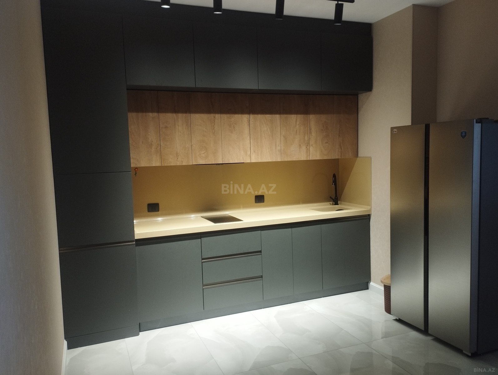 Modern Park yaşayış kompleksinde şəxsi istifadə üçün təmir edilmiş ev isti pol radiator kombi imergaz otaglarda yer parket bahalı yataq desti mətbəx mebeli yığılıb işığ sistemi Gewis İtaly işiğlandirma spot işığlar lustr Türkiyə Metsan firması giriş qapısı altın çelik ən yaxşısı dan