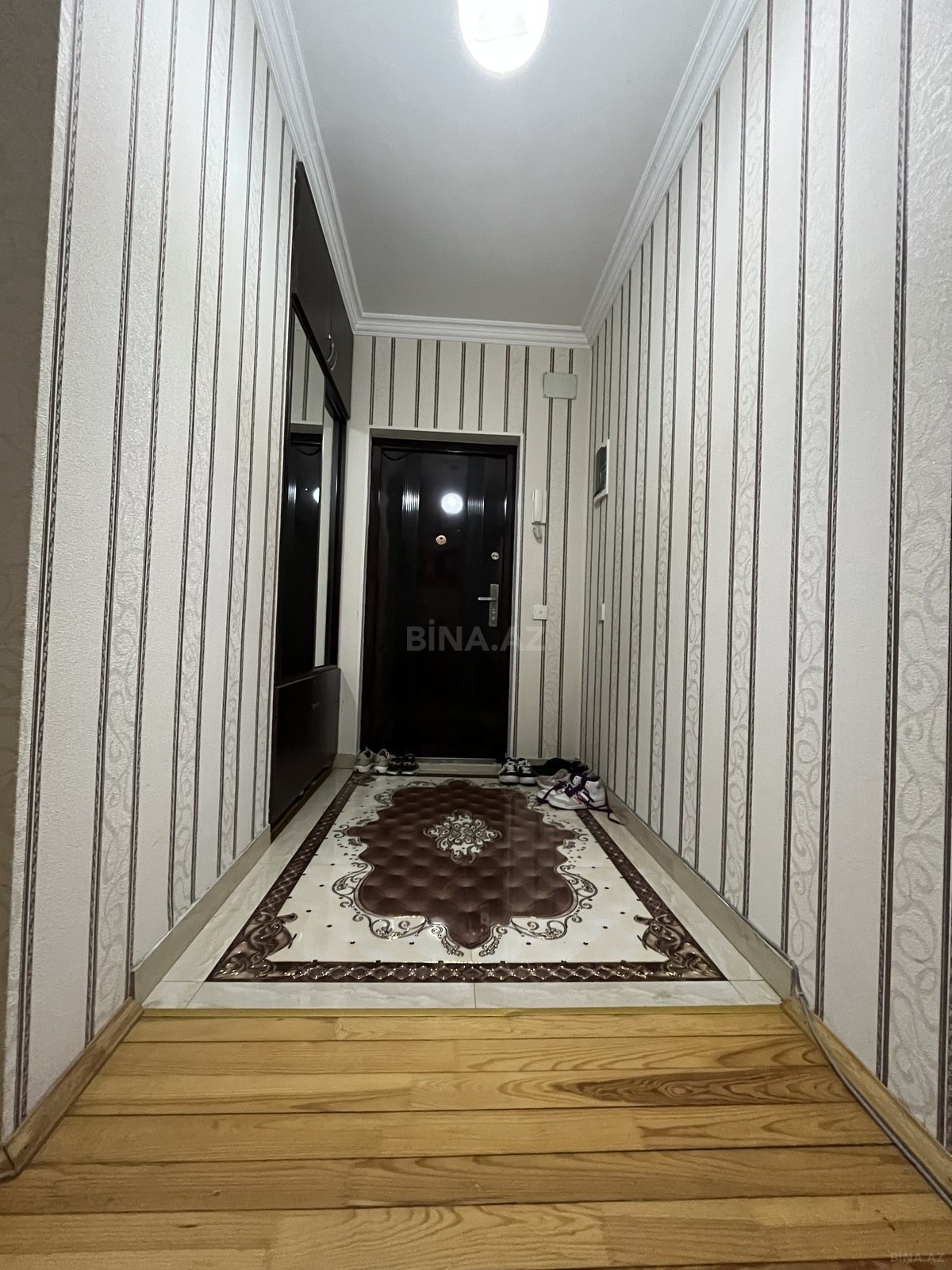 Menzil Bakıxanov qəsəbəsi, Yavər Əliyev küçəsi, 20 mərtəbəli binanın 5-cı mərtəbəsində yerlesir. Umumi sahəsi 82 kv.metr olub, qanuni 2 otaqlı, temirli, cam balkonludur. Esyali satilir. Qaz, su, işıq daimidir, istilik sistemi kombidir, sürətli liftlər, mühafizə, yeraltı dayanacaq var. Binanın yerləşməsi əlverişlidir, yanında 80 ve 310 nomreli məktəb, baxça, supermarketler, avtobus dayanacağı, bütün iaşə obyektləri mövcuddur. Ən əsası çıxarış var və ipotekaya yararlıdır. Qiymeti -143 000 manat.