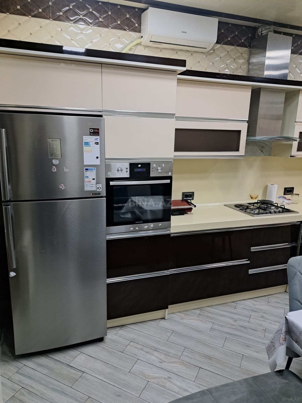 3 otaqlı əla təmirli və tam əşyalı mənzil,çox rahat işıqlı mənzildir metroya yaxındır,istilik sistemi kombidir,