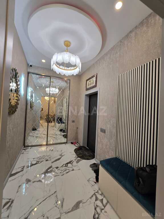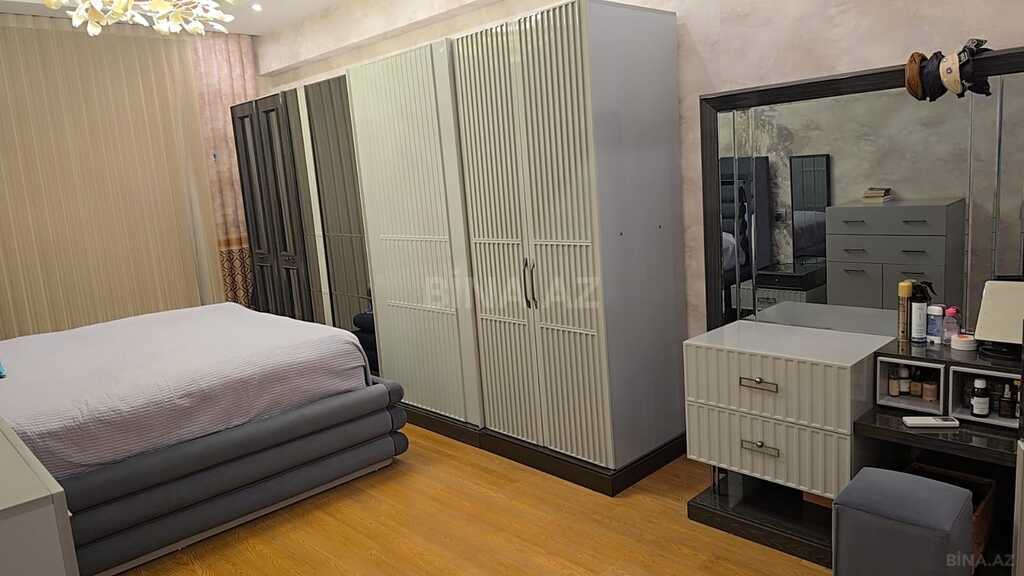 Elmlər Akademiyası metrosuna 7 dəqiqə gəzi məsafəsində super kontingentdə yeni tikili binada super təmirli ev. 6 otaqlı = 4 ədəd geniş 25 kvadratlıq cambalkonlu isti pollu və reşotkalı yataq otağı) + 1 ədəd 45 kvadratlıq geniş cambalkonlu və reşotkalı isti polu olan zal + 1 ədəd geniş 25 kvadrat cambalkonlu mətbəx + 1 ədəd 25 kvadratlı oturma giriş otağı var + 3 ədəd geniş hamam sanuzel. Mətbəx, koridor, hamam-sanuzellər və balkonlar hamısı isti poldur. Bütün otaqların özünün mitsubishi kondisioneri var. Hər balkonda şkaf, əlavə podezdə şkafı və evin içərisində əlavə geyim otağı (qarderob) var.