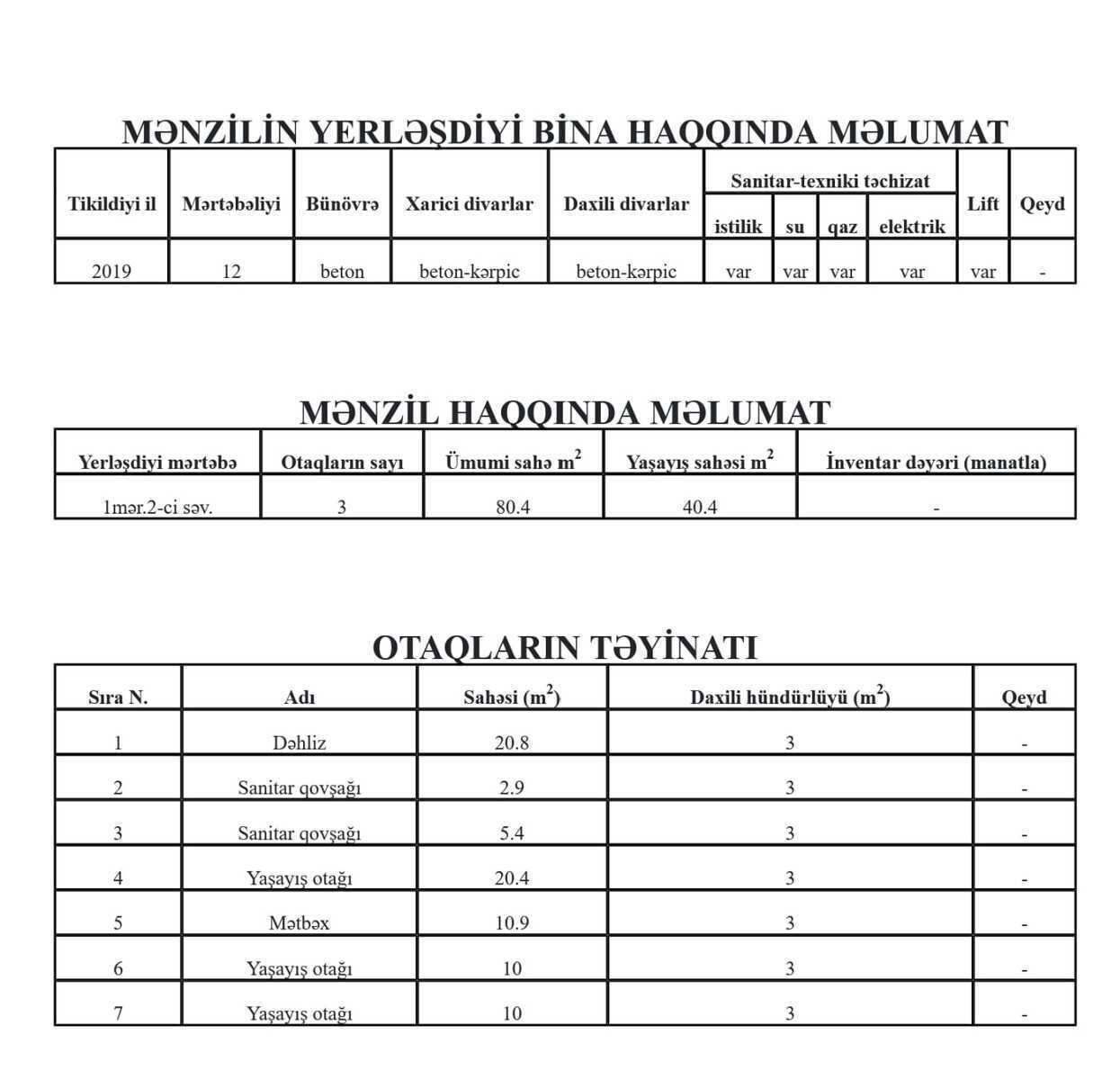 3 otaqlı köhnə mənzil