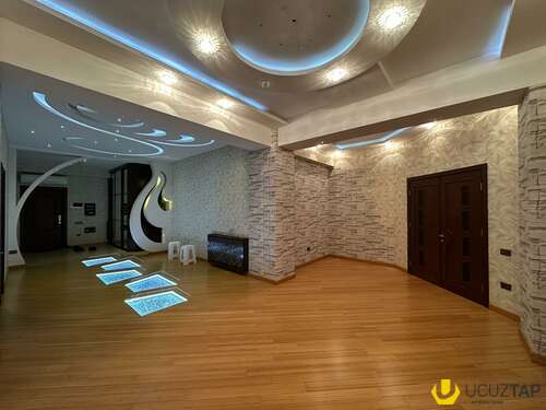 Satılır Yeni tikili, 310m², 4-Otaqlı Bülbül prospekti, Heydər Əliyev sarayının yanında. Yeni tikili 16 mərtəbəli binanın 13-cü mərtəbəsində 4 otaqlı mənzil satışa təklif olunur. Ümumi sahəsi 310m² təşkil edir. Geniş, yelçəkən, itkisiz layihə. İşıqlı mənzil, vitraj pəncərələr. Qonaq otagı 83m², mətbəx 39m², 3 s/q ( biri qonaq, digərlər yataq otağında ) camaşırxana otagı, cam balkon. Şəxsi istifadə üçün və təmir zamanı keyfiyyətli materiallardan istifadə edilib: Parket bambuk, isti döşəmə, kombi İmmergas, 5 split-kondisioner Mitsubishi, rozetkalar və keçidlər Gewiss, aksesuarlar E.C.A, seyf qapı və s. Yaşayış kompleksi təbii qaz təchizatı ilə təmin olunub, 2 səssiz və sürətli liftləri, kodlu giriş, domofon, 24/7 mühafizə xidməti və kamera müşahidə sistemi, avtodayanacaq və s. Bütün lazımı infrastruktur piyada məsafədə yerləşir: Heydər Əliyev və Qış parkı, 46 saylı orta məktəb, 28 Mall Ticarət mərkəzi, 28 May metrosu, Azərbaycan Dillər və Dövlət Neft Sənaye Universiteti, magazalar, supermarket Bravo, ictimai nəqliyyat dayanacağı və s. Daha ətraflı məlumat üçün zəng edin. Komissiya - 1% təşkil edir