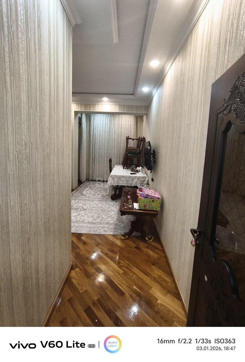 Lift var, qaz var, kominalları var, tam yaşayışlı binadi, sənəd müqavilə,az əşyalı, özü üçün əla təmir edib