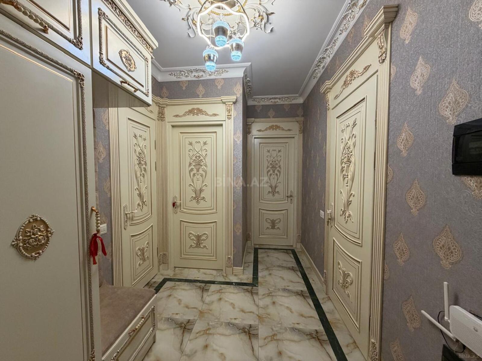 Xəyallarınızda olan mənzilə sahib olmaq istəyirsizsə, buyurun ! Metro Xətayinin yanında, “Mübarək” şadlıq sarayının yaxınlığında, klassik üslubda, qeyri-adi yaraşıqla təmir olunmuş 2 otaqlı mənzil satılır. Mənzilinin təmirinə 2 il vaxt , böyük zəhmət və xeyli maddiyyət sərf olunub. Uzun müddər rəssam öz sənətini, bacarığını əsirgəməyib və burada işlədib. Daxili qapılar da xüsusi əl işlərinin məhsuludur. Döşəməsi isə parketdir. Sadə dillə deşik “nağıllar aləmi”nə xoş gəlmisiniz ! Mebellə qiyməti 360.000 manat, mebelsiz 330.000 manat. (Ofis haqqı 1%).