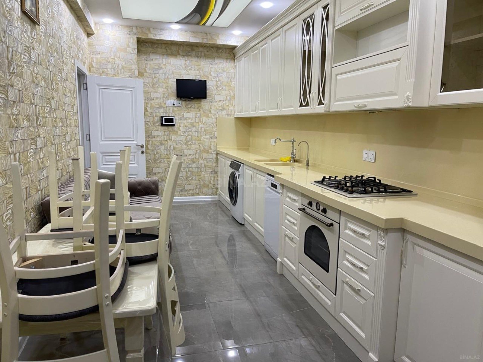 Su Sonasinin arxasi rayonunda, Təhsil Nazirliyinin yaxınlığında inşa edilmiş 17 mərtəbəli binanın 5 ci mərtəbəsində Yeni tikili binada 150 M2 - 3 otaqlı (Radnoy), uzun müddətli qalmaq istəyənlərə mənzil kirayə verilir. Mənzilin 2 balkonu var (balkonun 1 - i Cam balkondur). Su, Qaz daimidir. Ev təmirlidir. Əlavə olaraq, Mənzil Kombi sistemi, Paltar yuyan, Qab yuyan, 2 Televizor, 2 Kondisioner, İnternet və şəkildə görünən mebellərlə təchiz olunmuşdur. Mənzildə 2 sanuzel var. Sanuzel, koridor və Mətbəx isti poldur. Binada 2 sürətli lift var. Bina Gənclik və Nəriman Nərimanov metrolarına yaxın yerdə yerləşir. Binanın yanında park, Böyük Hipermarketlər, Restoranlar ( Çanaqqala , Günaydın), Məktəblər, Poliklinika və Klinikalar vardır. Ofis haqqi 30%