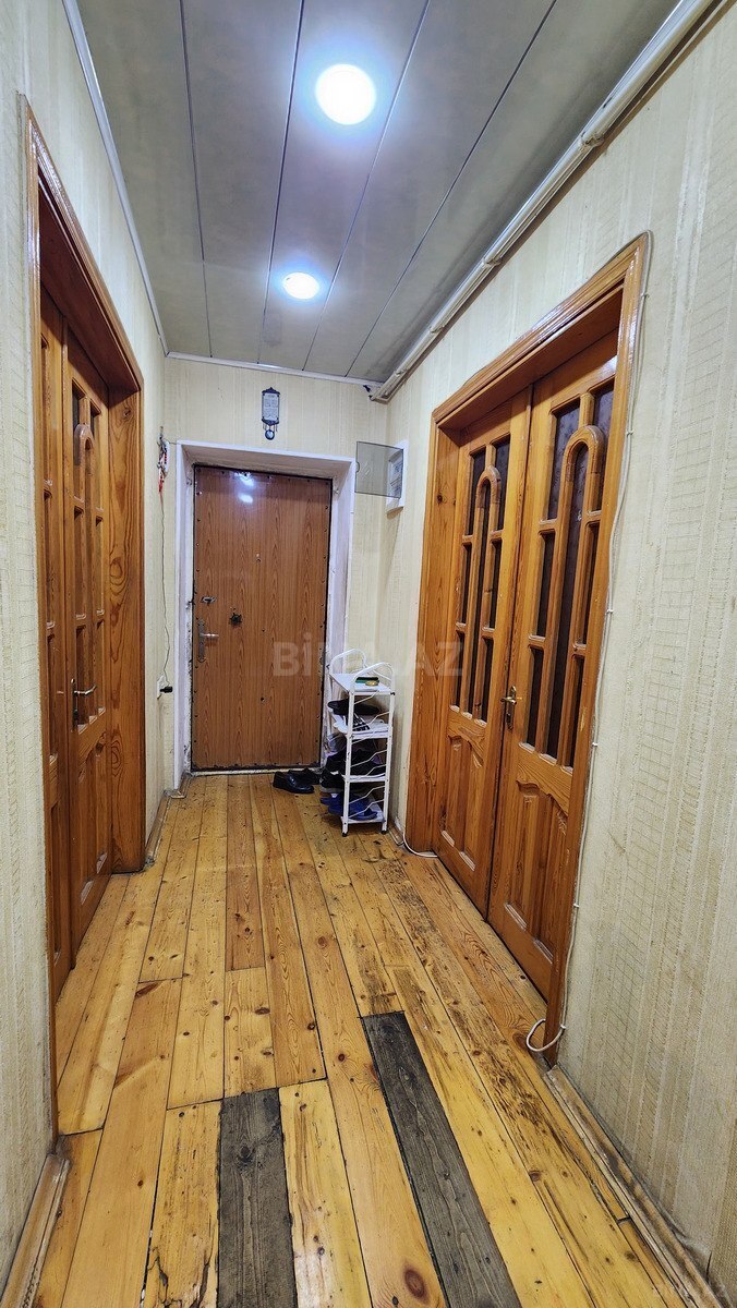 Salam. Daş leninqrad layihəli, mərkəzi istilik sistemli, sakit, parkingi olan geniş məhləsi olan gözəl binadır. Üzbəüz məktəblər, bağça ar, yanında Məlhəm klinikası və s. Təmiri zəifdir, 3 otaga düzəldilib, qonaq otağı 42m2 dir. İstəyə görə təmir zamanı yenidən 4 otaq etmək olar. Hazır ipotekadadır, 35 min borcu qalıb. 9 ildir evi almışam, qeydiyyatda yalnız özüməm.