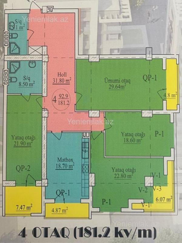N. Nərimanov metrosunda Satılır 4 otaqlı 185 m² Yeni tikili