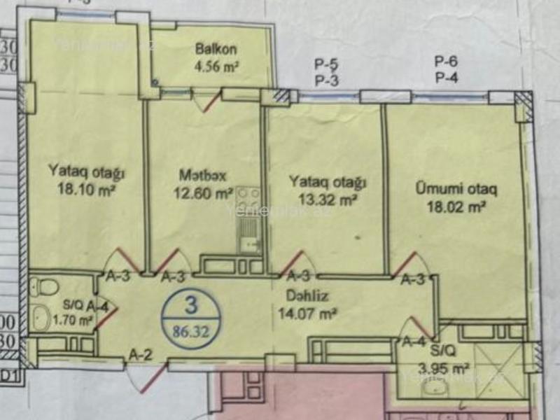 Q. Qarayev metrosunda Satılır 3 otaqlı 86 m² Yeni tikili