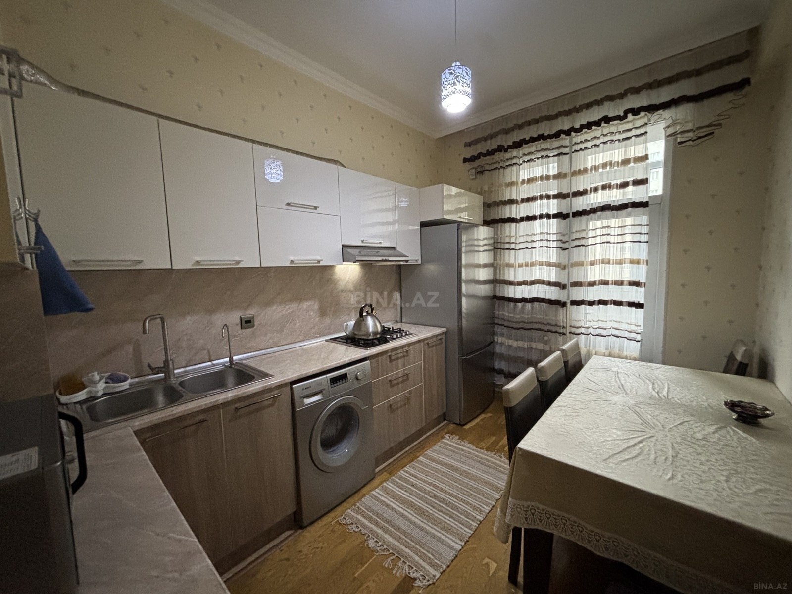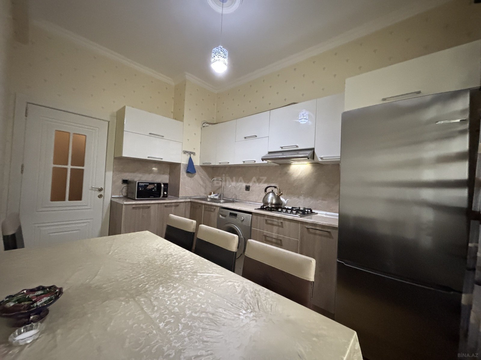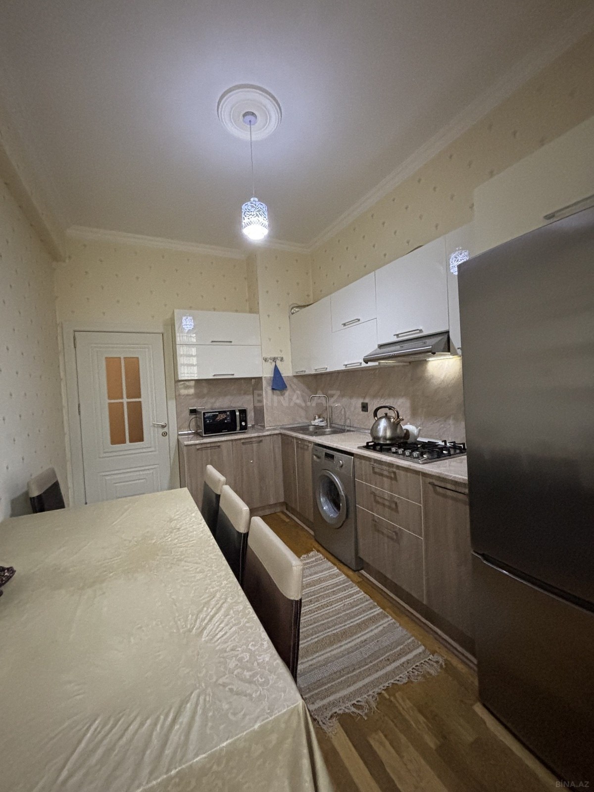 Kristal Abşeronun Park Xırdalan Layihəsi, Bina 22 (1-ci həyət)! Qanuni 2 otaq, orta mərtəbə, orta səliqəli və yeni mənzil, otaqların və mətbəxin pəncərəsi binanın ön hissəsinə-həyətə baxır, plastiklə bağlanmış balkon. Tam mebellə təchiz olunmuş (qonaq, yataq, mətbəx, dəhliz (2 dolab yığılıb), tam yeni əşyalı (BOSCH markalı soyuducu, paltaryuyan, tozsoran, içməli su filtri (ayrı su krantı), WİFİ, TV (yeni quraşdırılıb, zəmanətlidir), Samsung markalı mikrodalğalı soba, ətçəkən maşın, 2 kondisioner (qonaq və yataq otağında yeni quraşdırılıb, zəmanətlidir), kombi və s), tam təmirli (yeri parketdi), 24 saat mühafizə xidməti, geniş parklı həyəti, yerüstü və yeraltı qarajı, sürətli 2 lifti ( sərnişin və yük üçün), mərkəzdə bütün infrastruktura yaxın (dayanacaq və parkın yanında, bağça və məktəbin yaxınlığında). Öz mənzilimizdir, çıxarış (kupça) adımızadır, mənzil şəkillərdə görünən bütün əşyalarla birgə satılır. Real alıcıya mənzilə baxdıqdan sonra ağılabatan endirim olunacaq inşəAllah.