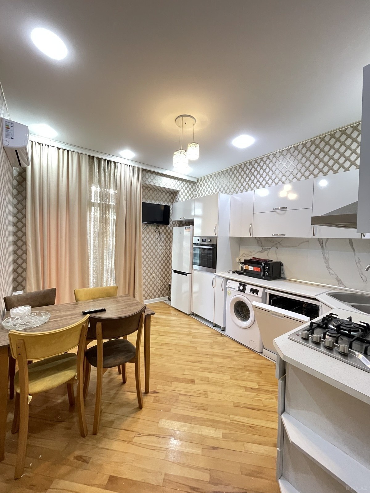 ------- ЖК Grand Hayat Residence -------- ▪ Квартира 2 Комнатная Полностью Меблированная 3 телевизора 3 кондиционера печка микроволновка посуда мойка и т.д ▪ У Комплекса имеется 24 часовая охрана, Камеры наблюдения, услуги ресепшна, Подземная парковка ▪ Есть большой детский двор для прогулки и развлечений Под зданиям есть McDonald's Комиссия офиса 30 % по доп вопросам можете звонить ( Whatsapp ) тоже активен ----------------------------------------------------- -------- Grand Hayat Residence Y/k-------- ▪ Geniş Həyəti, Mc Donalds, Yer Altı parkinq ve sair Qanuni 2 otaq hər otaqda tv və kondiçioner var qabyuyan mikro dalğalı və böyük soba və sair Ətraflı məlumat üçün zəng edə bilərsiniz. ( Whatsapp ) aktivdir Xidmət haqqı 30 %