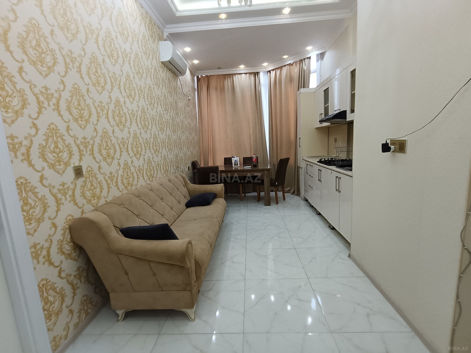 Yasamal rayonu, Yeni Yasamal, Əsəd Əhmədov küç,- "Bravo Market", "Bazarstore" "McDonalds" yaxınlığında, İnşaatçılar m/s 5-6 dəq məsafə, 19 mərtəbəli binanın 18-ci mərtəbəsində 56 m² 2 otaqlı mənzil kirayə verilir. TAM TƏMİRLİ mənzildir. səliqəli, işıqlı geniş mənzildir.Mənzildə yaşamaq üçün hər bir şərait var. Qiymət: 600 azn/ay