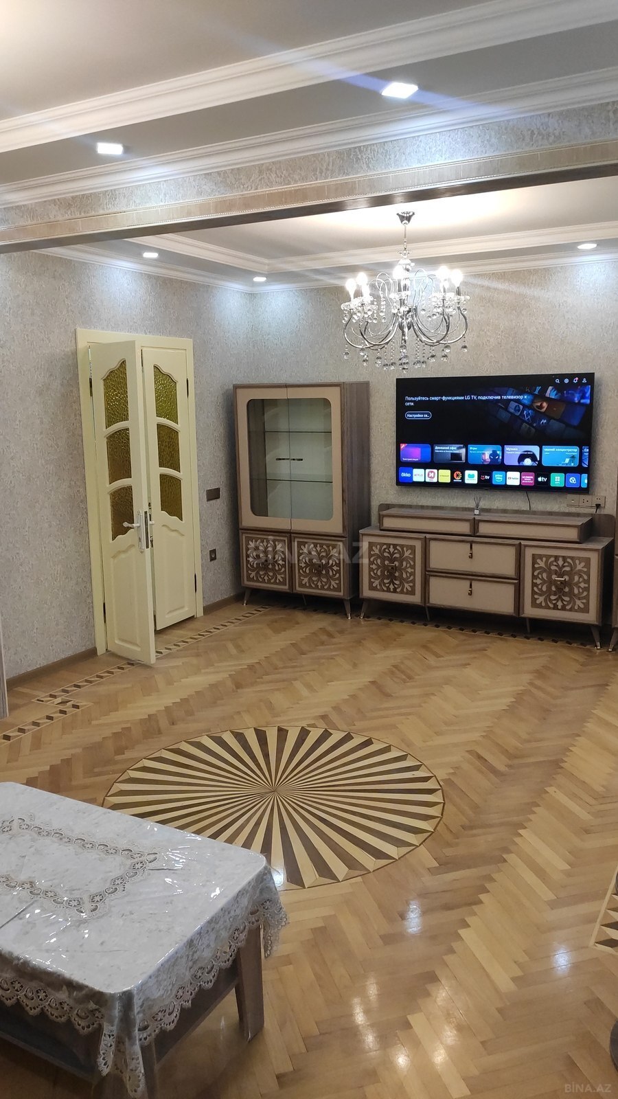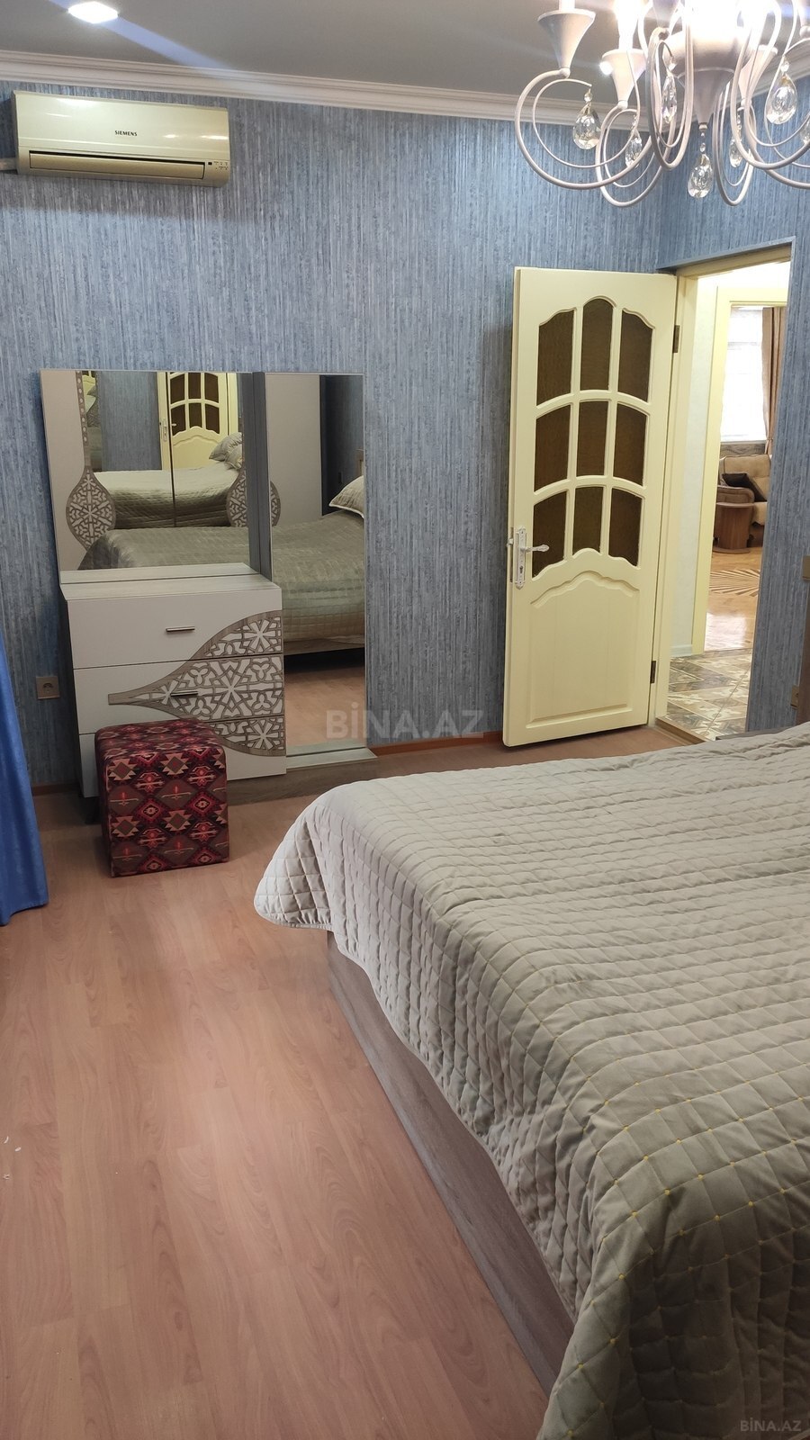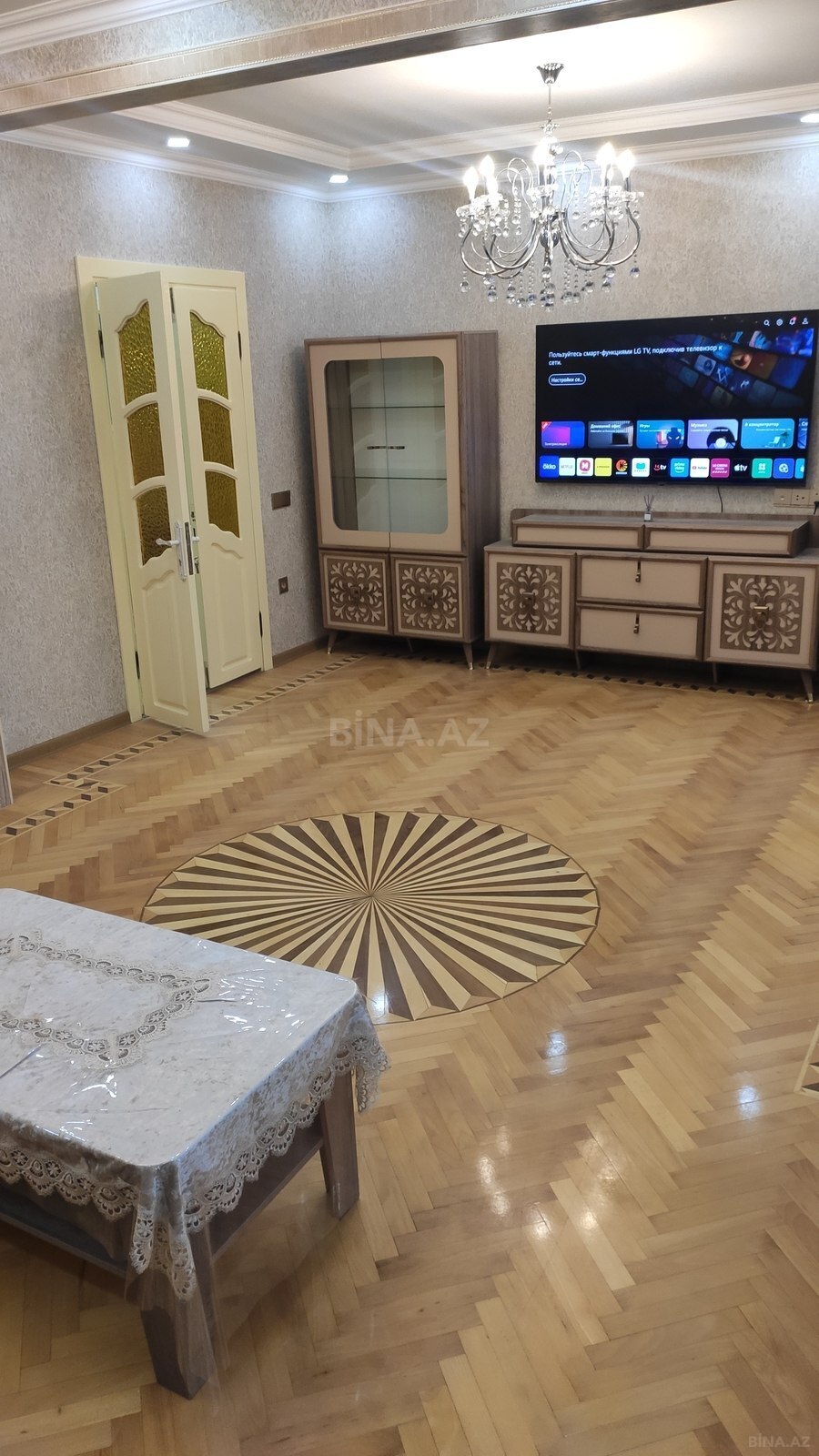 4 комнатная ленинградский проект переделанная в 3-х комнатную, зал 42 кв.м спальня 20 и детская 22 кв.м, квартира со всеми удобствами, после ремонта проживания небыло, вся мебель и оборудование в квартире новое, сдается только на длительный период с оплатой заранее за 6 месяцев. 4 otağlı mənzil leninqrad layihəli, 3 otağlıya edilib, qonağ otağı 42 kv.m, yataq otaqları 20 və 22 kv.m, təmirdən sonra yaşayış olmayıb, mənzildə mebel və texnika yenidir. İcarəyə verilir uzun müddətə 6 ay odənişi əvvəlcə vermək şərtilə