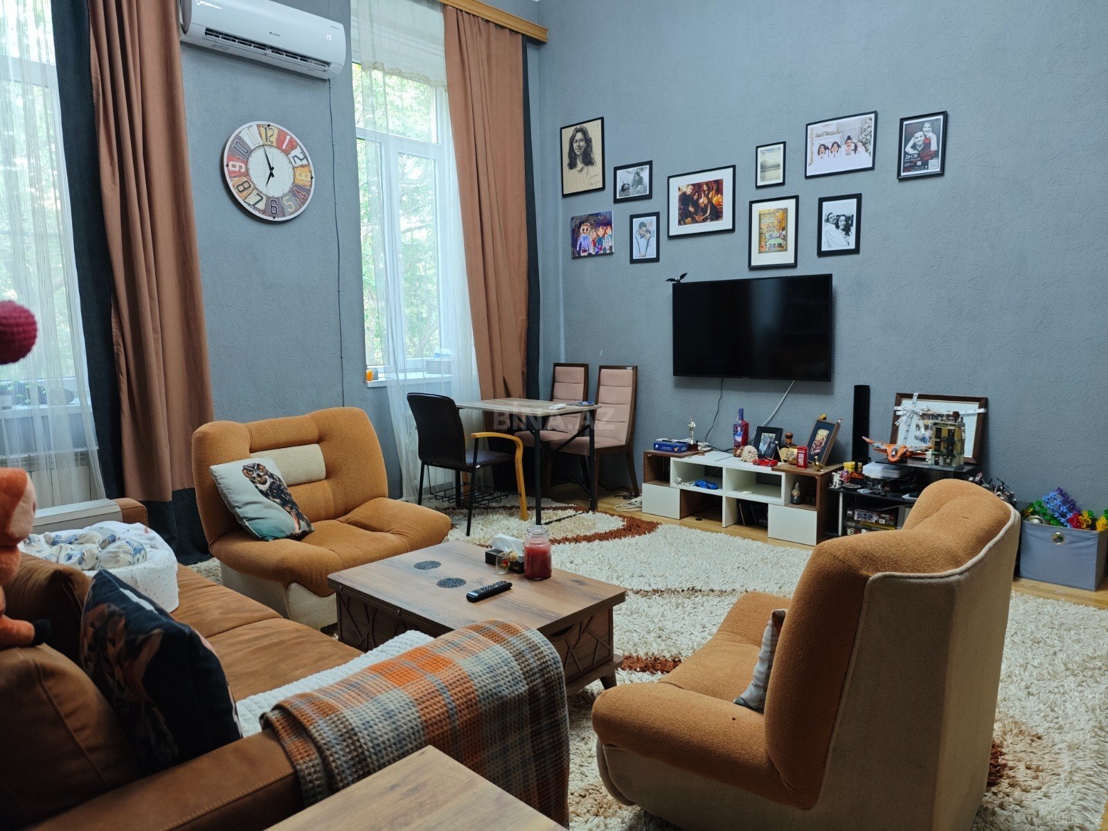 Statistika ərazisində, Rus kilsəsinin yanı. 19-cu əsrin sonlarına aid memarlıq evi, 4 metr hündürlükdə tavanlar, nəhəng pəncərələr, zal, hamam, mətbəx, yataq otağı və uşaq otağı bütün mebel və avadanlıqlarla birlikdə. Mənzildə kombi, kabel internet və televizor, 2 kondisioner, Samsung Smart TV, paltar və qabyuyan maşını, toster və ətçəkənə kimi bütün kiçik və iri məişət texnikası var. Bütün qab-qacaq və tekstil verilir. Çox sakit ərazi, gözəl qonşular, evin altında pulsuz maşın saxlamaq üçün yerlər, yaxınlıqda bütün infrastruktur. Hamamda yeni santexnika və duş kabinası var. 2 masa, çoxlu saxlama yeri. 1 aylıq depozitlə. Aylıq qiyməti 850 AZN.