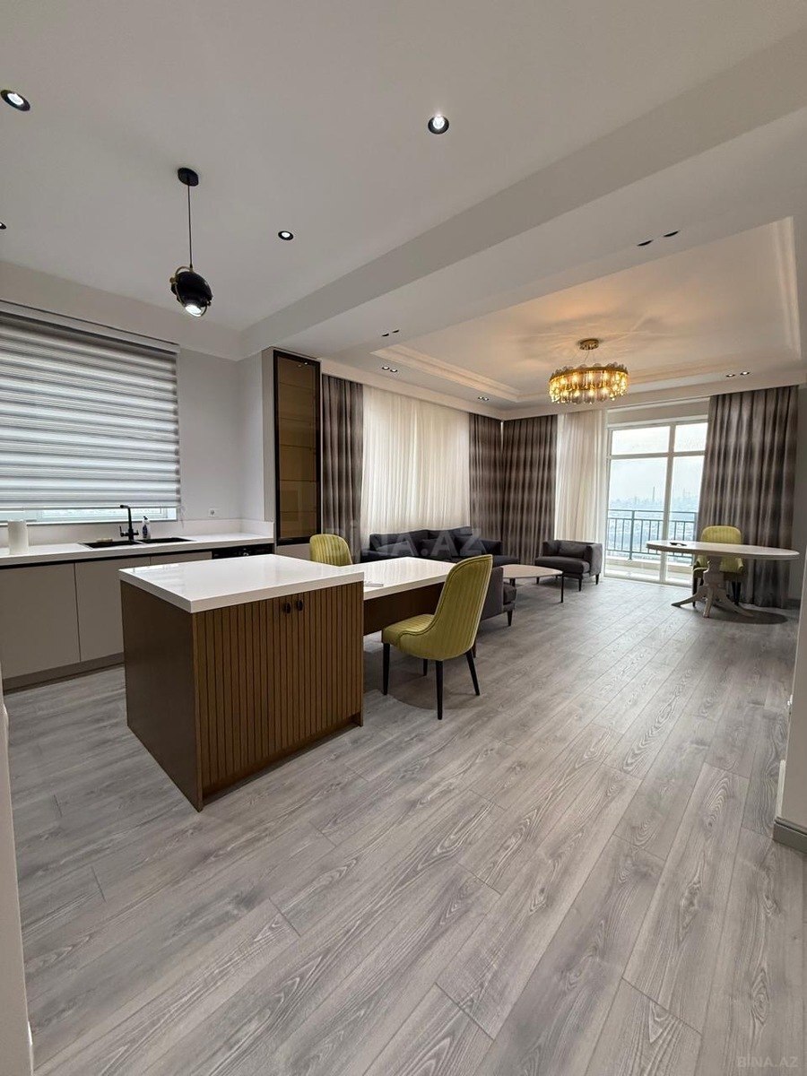 Mənzil Ağ şəhərdə, Raffle Tower yaşayış kompleksinin 17-ci mərtəbəsində yerləşir. Ümumi sahəsi 120 kv, 2 otaq təşkil edir. Mənzil studio tiplidir. 1 yataq otağı, 1 sanitar qovşağı, 1 zal, 1 hall və 2 eyvandan ibarətdir. Mənzildə 2 kondisioner, soyuducu, soba, stolüstü soba, mikro dalğalı soba, paltaryuyan və duş kabin mövcuddur. Ev premium mebellər ilə təmin edilmişdir. Eyvan şəhər mənzərəlidir. Aylıq 1700 AZN kirayə haqqı təşkil edir. Depozit mövcuddur. Xidmət haqqı 20% təşkil edir.