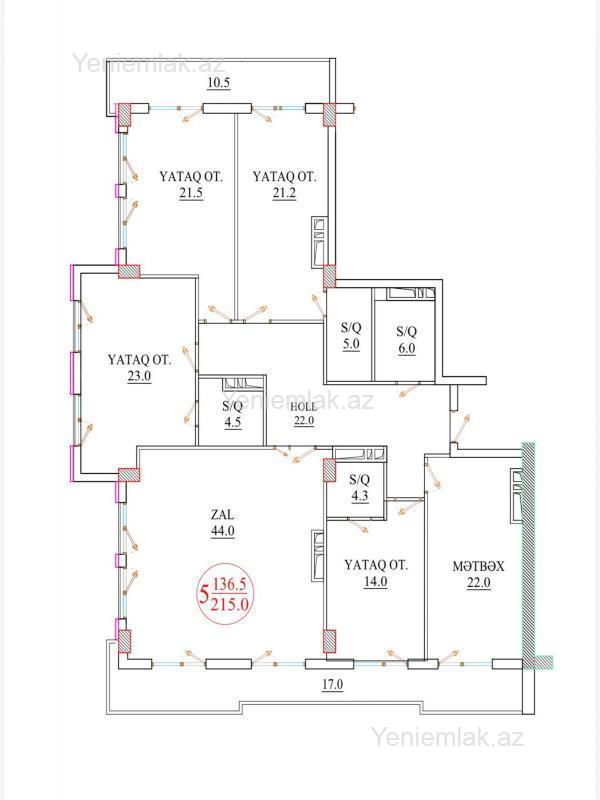 5 otaqlı yeni tikili