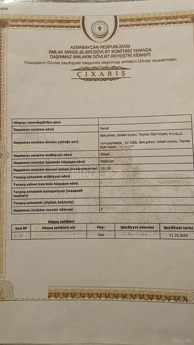 İ. şəhər metrosu, Satılır 3 otaqlı 101 m² Köhnə tikili
