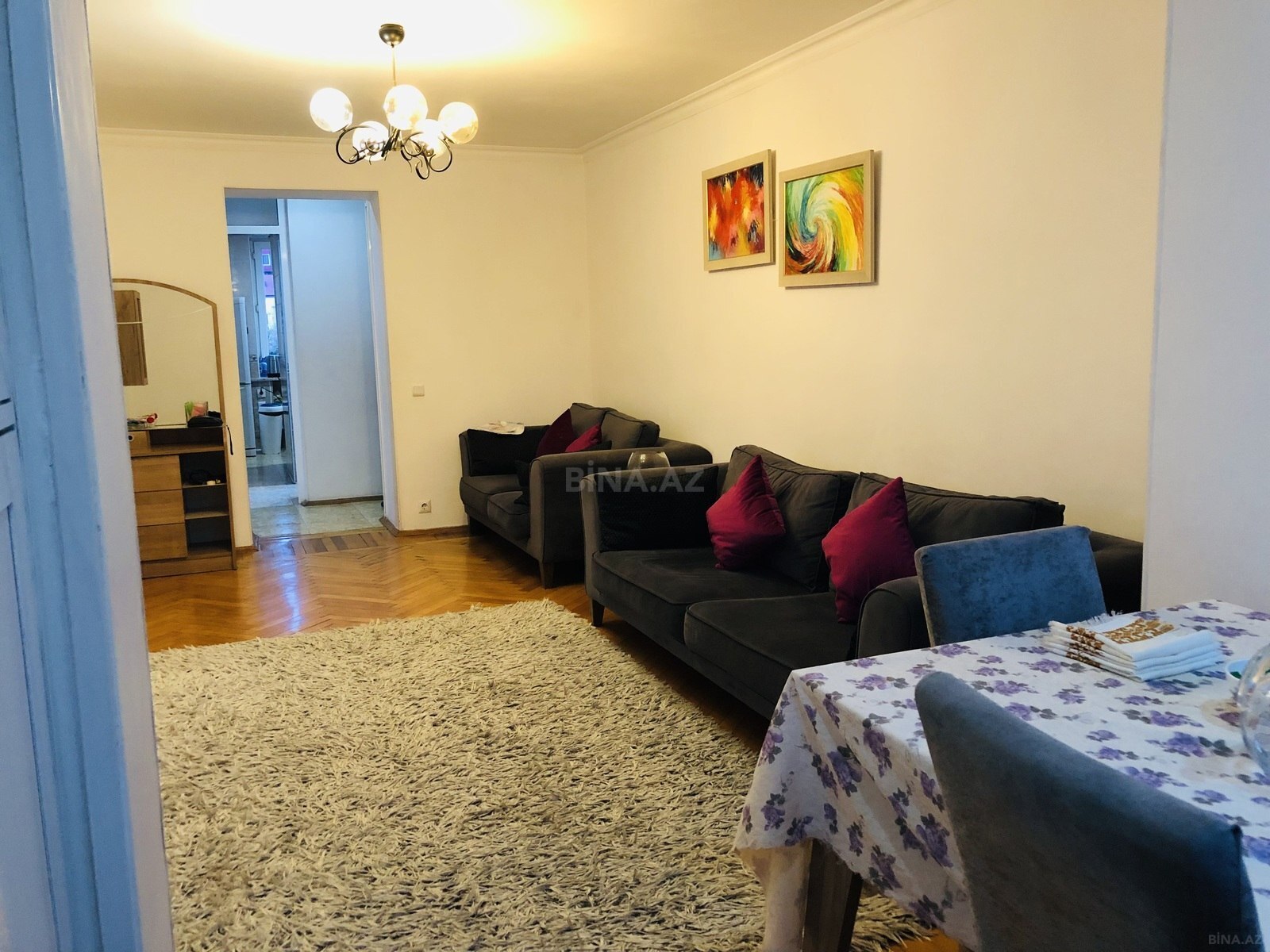 Neftçilər metrosu-İcra Hakimiyyətinin arxasindaki 5 mərtabəli binanin 3-cü mərtəbəsinda 3 otaqli evimi kirayəyə verirəm. Şəkillərda göründüyü kimi ev əşyalidir,yaşamaq üçün hər şəraiti var. Evdəki mebellər Yataş,kelebek və zivella firmalarina aiddir. Bütün texnikalardan əlavə qabyuyan maşın da mövcuddur. İndiyə kimi kirayəyə verilməyib. Ailəli şəxslərə üstünlük verilir. Maraqlanan şəxslər muraciət edə bilar.