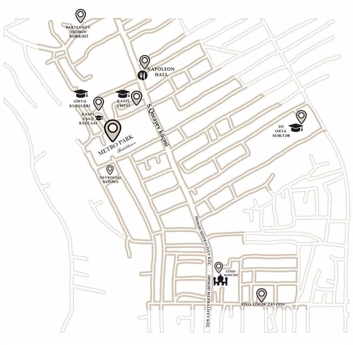 - Μ İnşaatçılar piyada ~10 dəq. (697m)