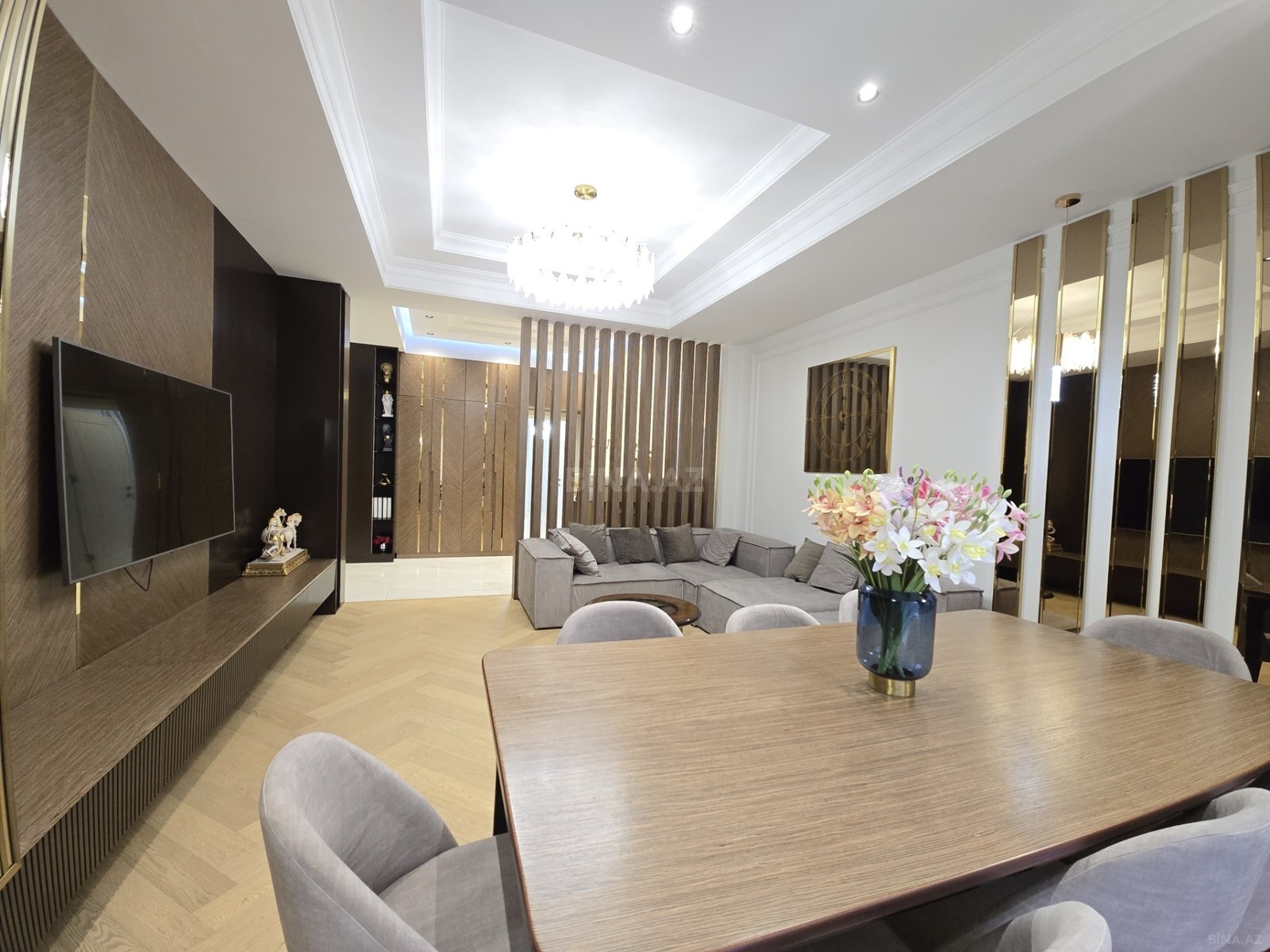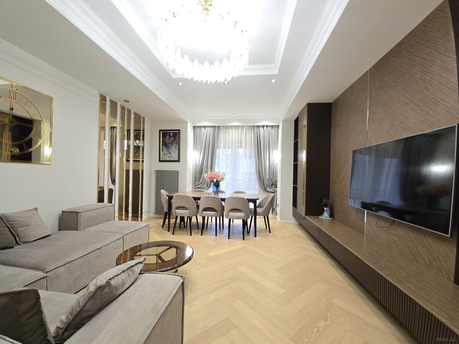 Ağ Şəhər, Ancora Residence – Eksklüziv Təmirli 4 Otaqlı Mənzil! Bakının ən müasir və ekoloji təmiz rayonunda, Qarabağ Atları Meydanının tam yanında, premium səviyyəli mənzil təqdim olunur. Mənzil yüksək zövqlə, bahalı materiallardan istifadə olunmaqla təmir edilib və çox az yaşayış olub. Əsas Özəlliklər: Sahə: 141 m² Otaq sayı: 4 (Geniş qonaq otağı, rahat yataq otaqları) Mərtəbə: 7/5 Ünvan: Ağ Şəhər, Ancora Residence Vəziyyəti: Möhtəşəm təmirli, minimalist və müasir interyer dizayn Üstünlükləri: Dizayn: Parlaq tavanlar, estetik işıqlandırma sistemləri (çılçıraqlar və gizli işıqlar) və məkana genişlik qatan güzgü detalları. Döşəmə: Yüksək keyfiyyətli "herringbone" (balıq beli) parket. Mebel və Texnika: Məkanın ruhuna uyğun seçilmiş quraşdırılmış mebellər və geniş TV zonası. İnfrastruktur: "Ancora Residence" geniş həyəti, 24/7 mühafizə xidməti, yeraltı parkinqi və Bulvara yaxınlığı ilə seçilir. Qeyd: Mənzildə çox az yaşayış olduğu üçün hər şey tam yeni və ideal vəziyyətdədir. Həm yaşayış, həm də investisiya üçün mükəmməl fürsətdir.