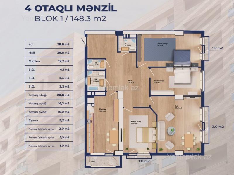 1m² - 3 479 ₼