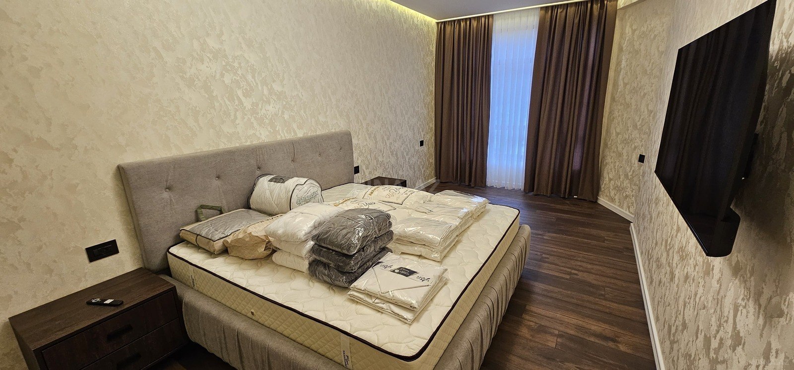 Русский: Новое отремонтированное, просторное и светлое 4-комнатное жилье предлагается в аренду. Высококачественный ремонт, современный дизайн, просторные комнаты, современная кухонная техника, круглосуточная охрана, удобное расположение и хорошие транспортные связи. В квартире есть аккуратный балкон, большие окна, высокие потолки и прекрасный вид. Для получения дополнительной информации по арендной плате и для того, чтобы посмотреть квартиру, звоните: English: A newly renovated, spacious, and bright 4-room apartment is available for rent. High-quality renovations, modern design, spacious rooms, modern kitchen appliances, 24/7 security, ideal location, and easy transportation links. The apartment features a neat balcony, large windows, high ceilings, and a beautiful view. For more information about the rent and to schedule a viewing, please call: