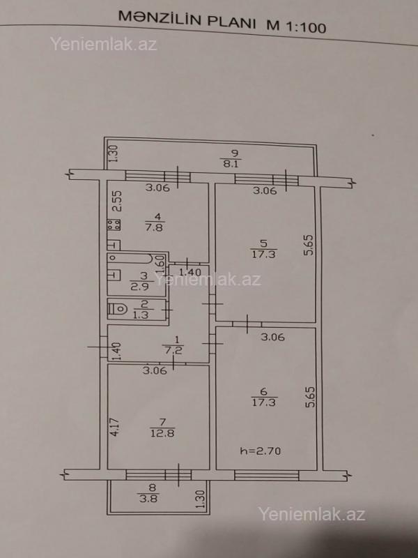 3 otaqlı köhnə mənzil