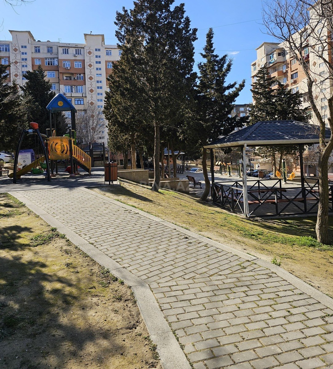 Yeni Günəşli, "V" massivində, bina 26,mənzil 14-də yerləşən tam qanuni 2 otaqlı mənzil satılır. Kupçası var, ipotekaya yararlıdır. Mətbəx hissəsi tam böyük hissəyə açılmış, qapı və pəncərələr dəyişdirilmiş, istilik sistemi mərkəzləşdirilmişdir. Döşəməsi taxta və üstündən laminat vurulmuşdur. Ev tam bütün əşyalarla birlikdə satılır. Qiyməti 130000 manatdır.