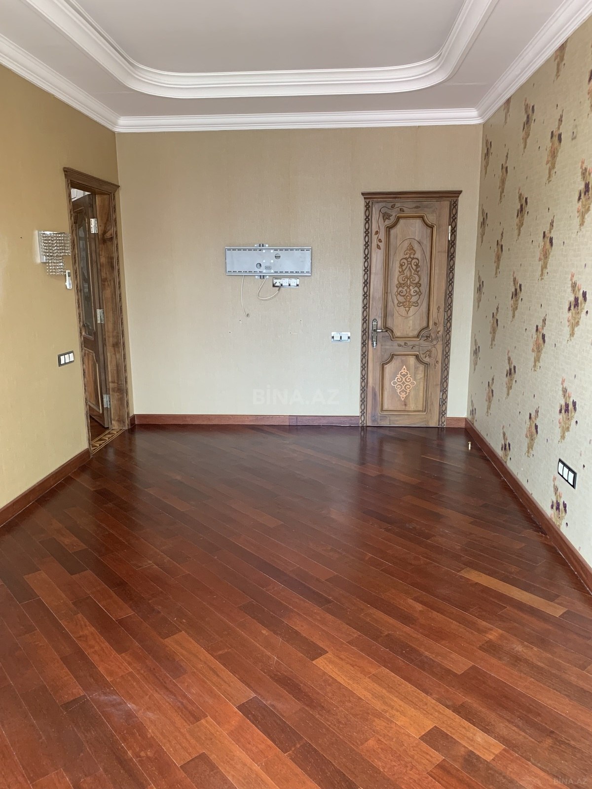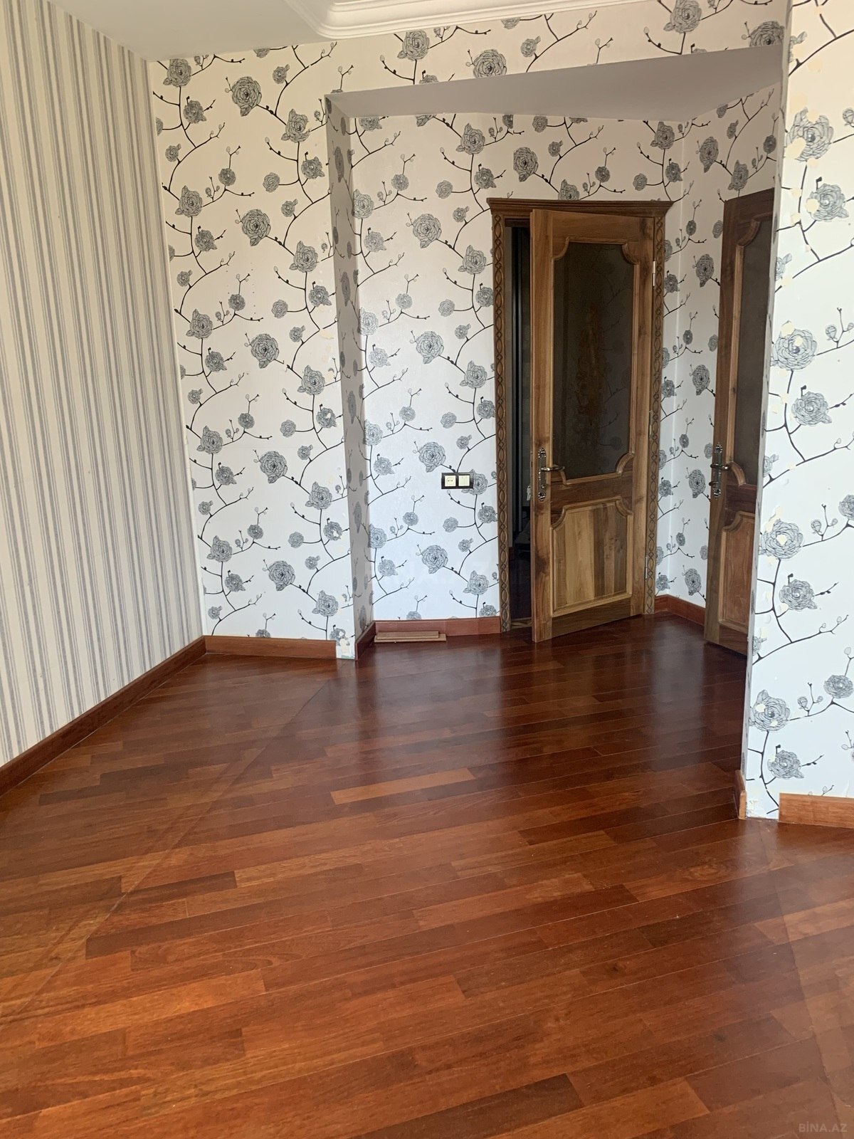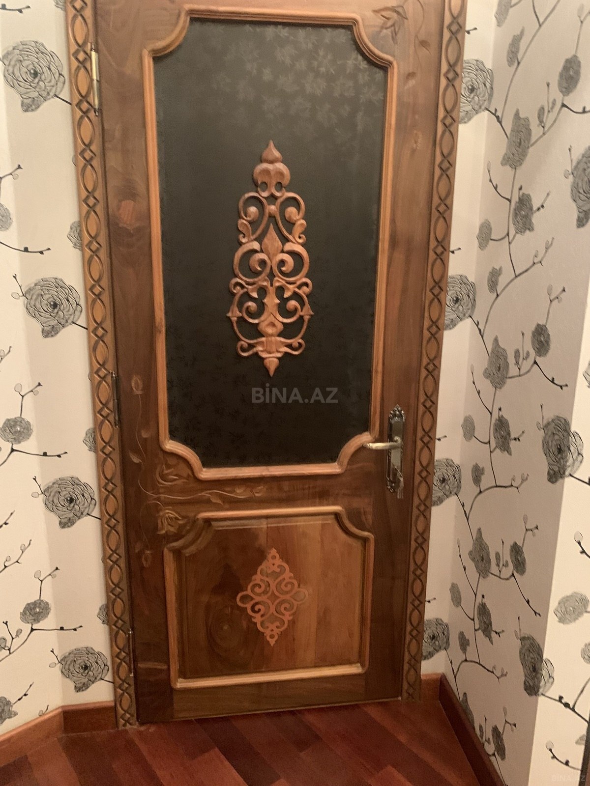 3 otaqli temirli menzil.Parket qirmizi agacdan,qapilar qoz agacindan,metbex mebeli göyuş agacindan yigilib.2 sanuzel,3 eded kond. var.Yataq otaqlar iç-içe oldugu ucun bu qiymete verilir.Qiymet pod mayak qiymetine temirli menzil. Menzil qanuni 3 otaqdir.Sadece dizaynla uwaq yataq otagini qarderob otagi edilmiwdir.