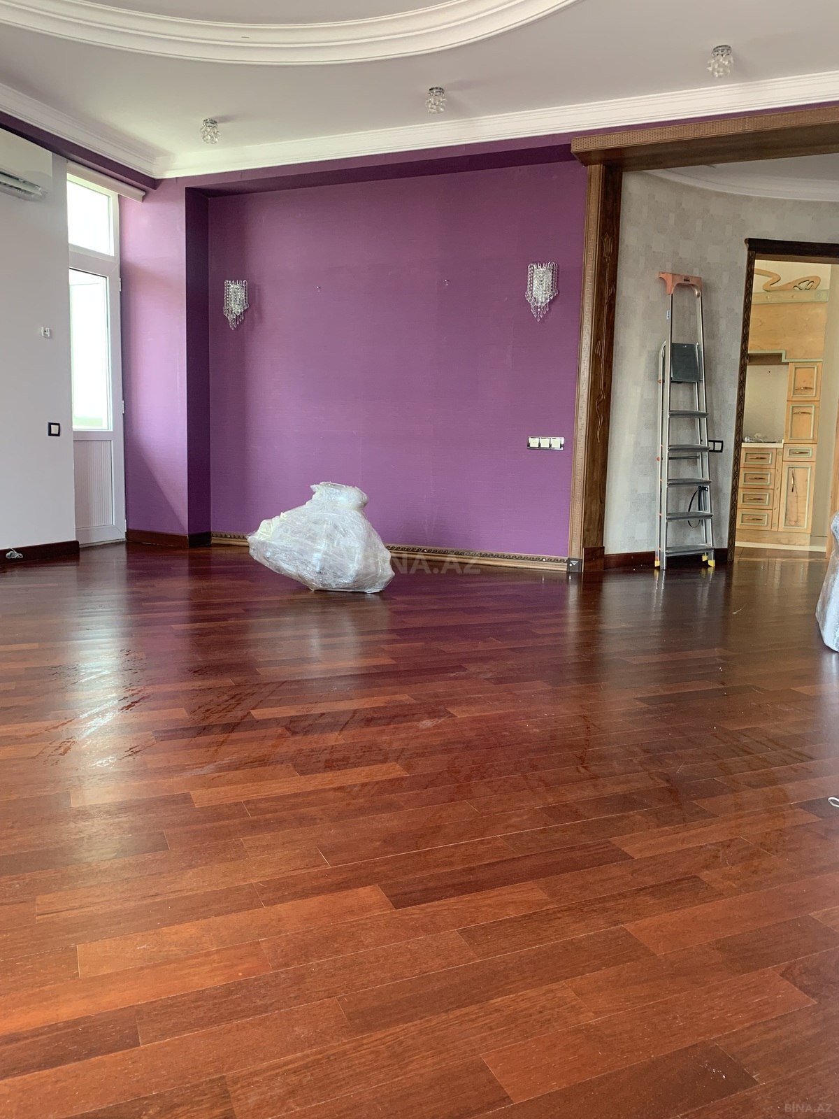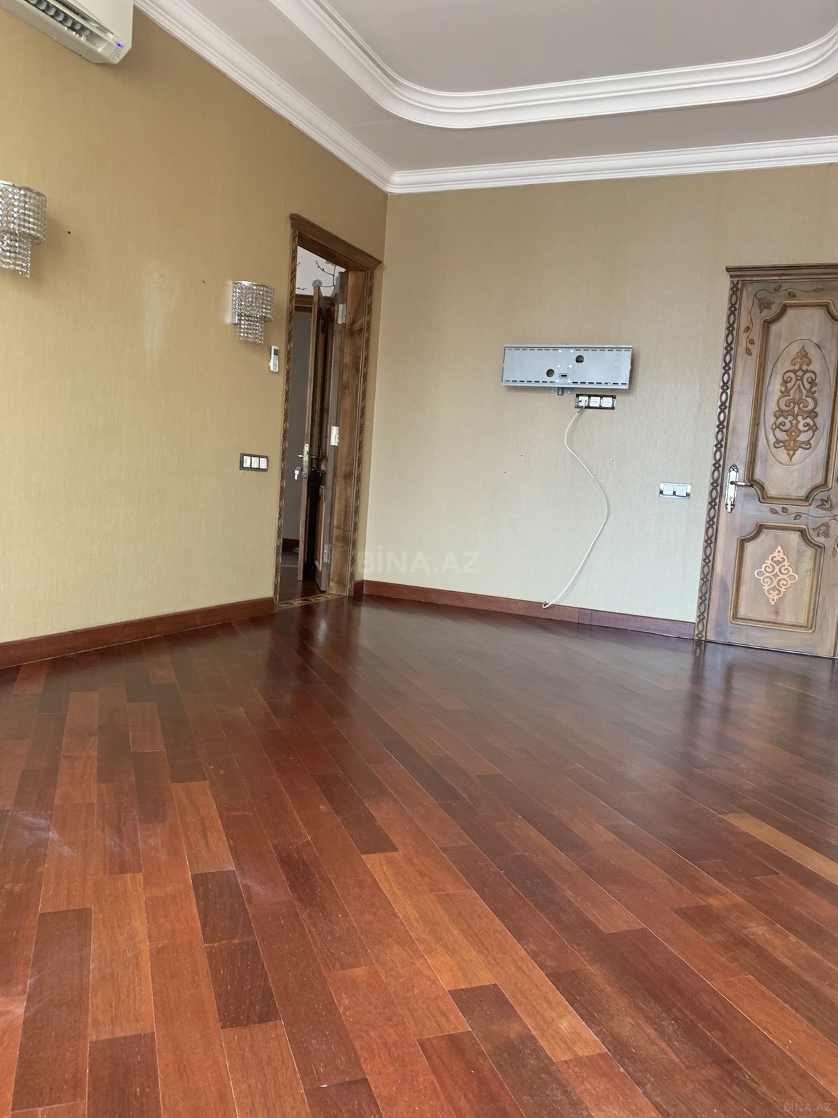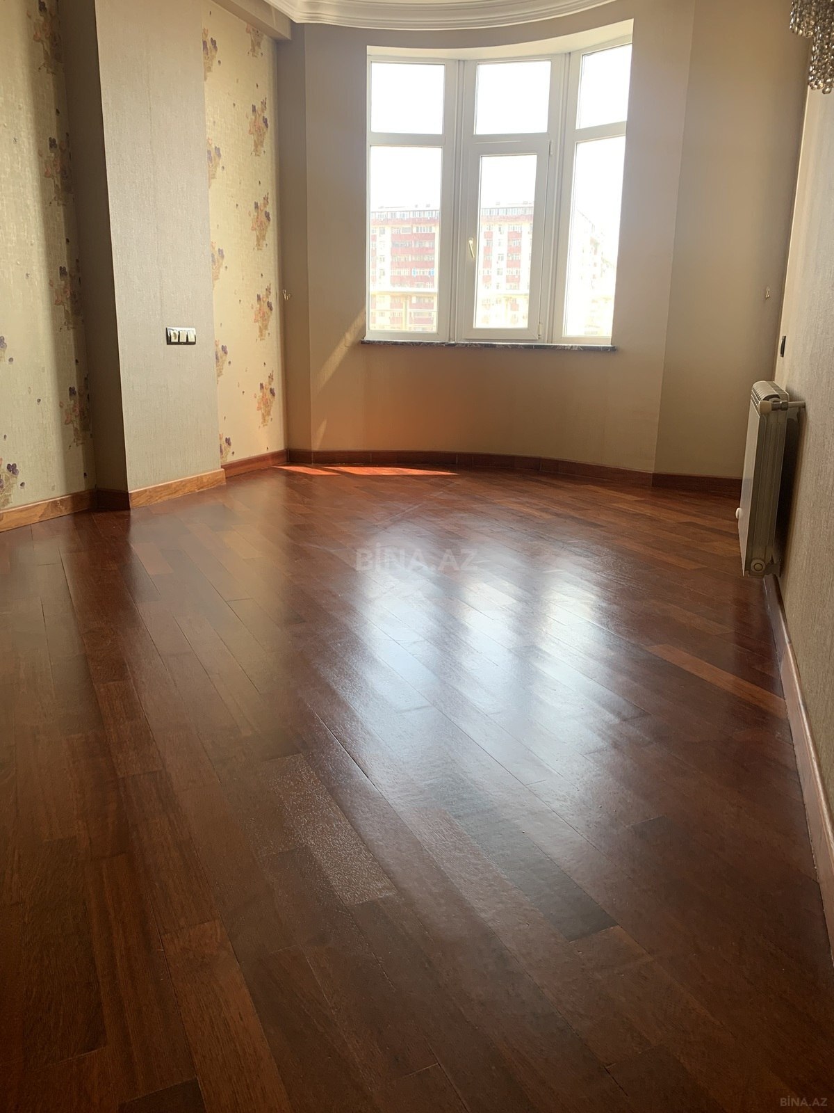 3 otaqli temirli menzil.Parket qirmizi agacdan,qapilar qoz agacindan,metbex mebeli göyuş agacindan yigilib.2 sanuzel,3 eded kond. var.Yataq otaqlar iç-içe oldugu ucun bu qiymete verilir.Qiymet pod mayak qiymetine temirli menzil. Menzil qanuni 3 otaqdir.Sadece dizaynla uwaq yataq otagini qarderob otagi edilmiwdir.