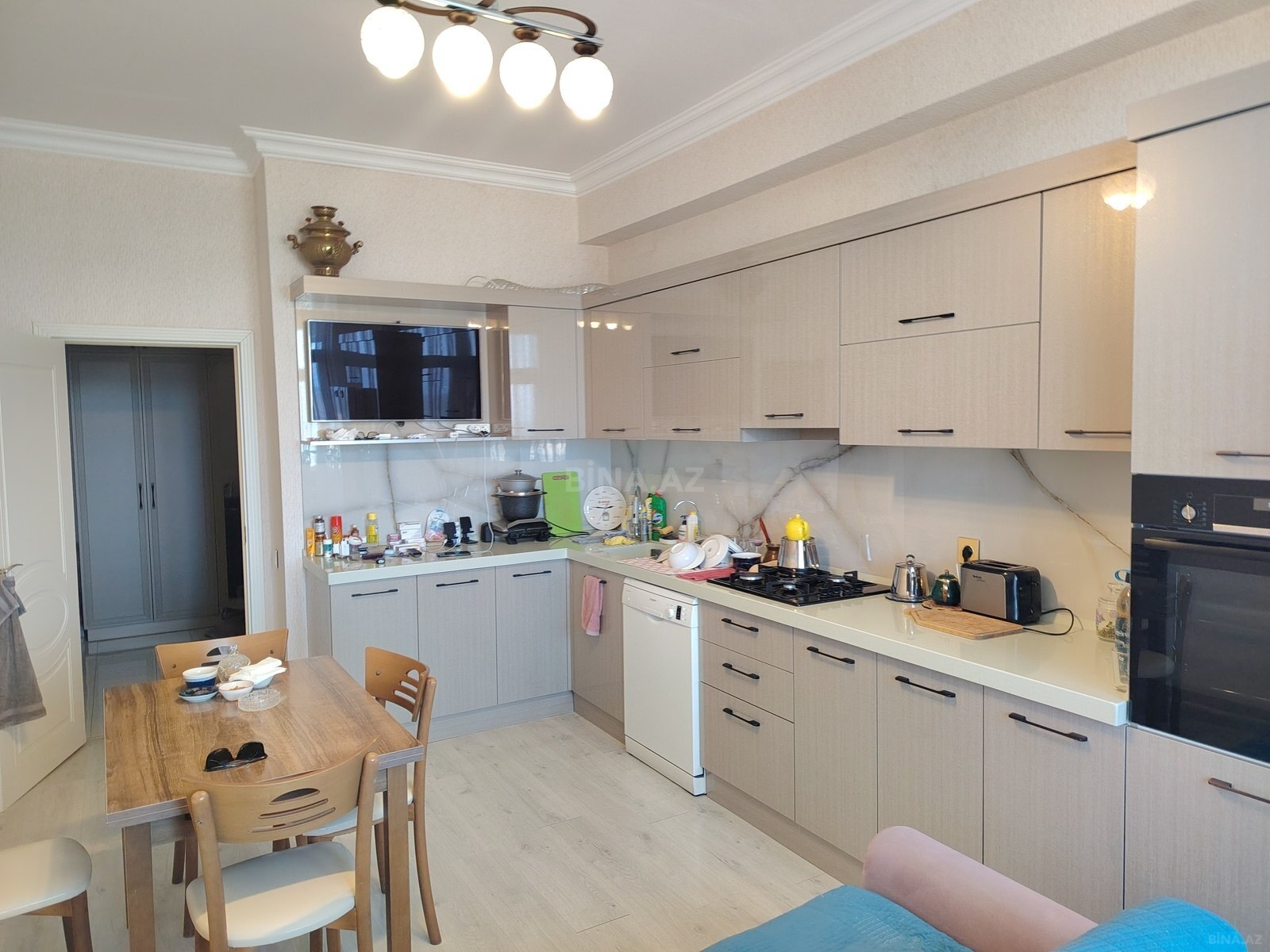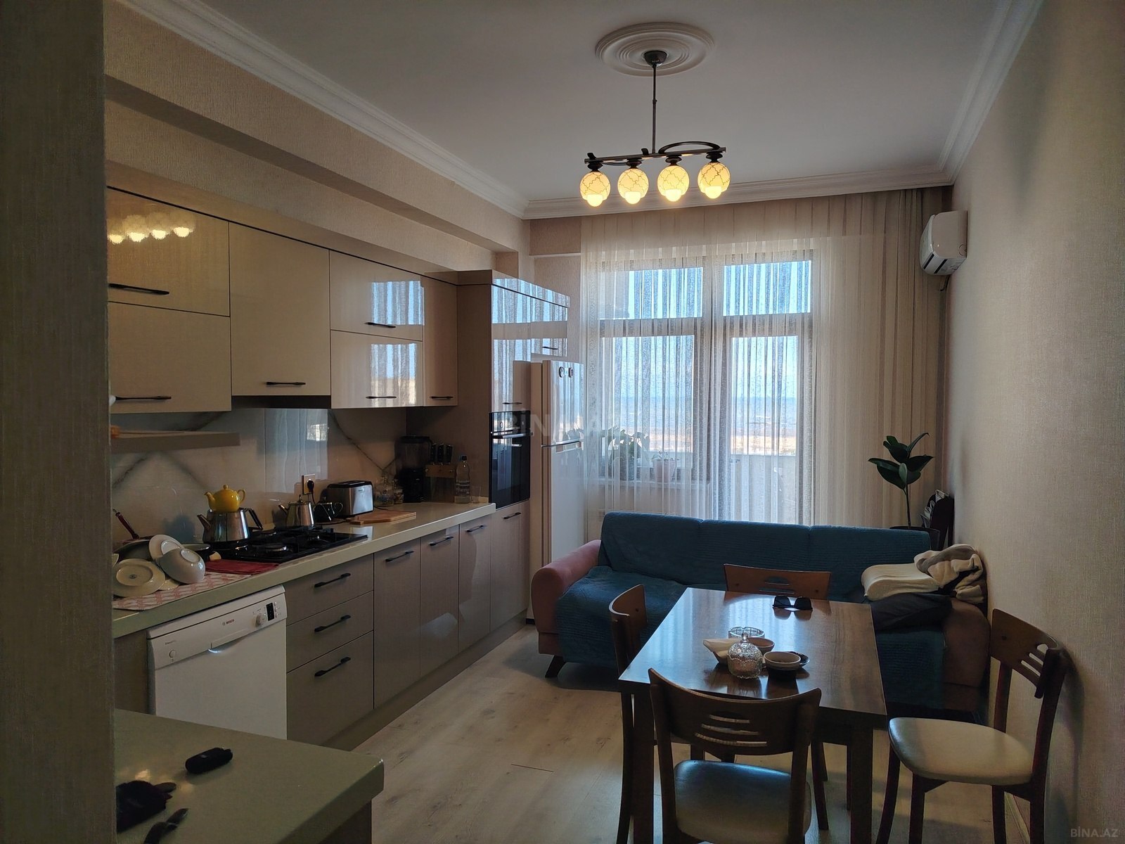 Salam, ev əla təmirlidi, əşyaların 90% qalacaq. Bütün əşyalar tanımış markaların əşyalarıdı. Qab yuyan, soyuducu, hır otağın böyük m2 kiliması. Bu ərazidə təmirsiz evin 1 m2, 2100 manata satılır.