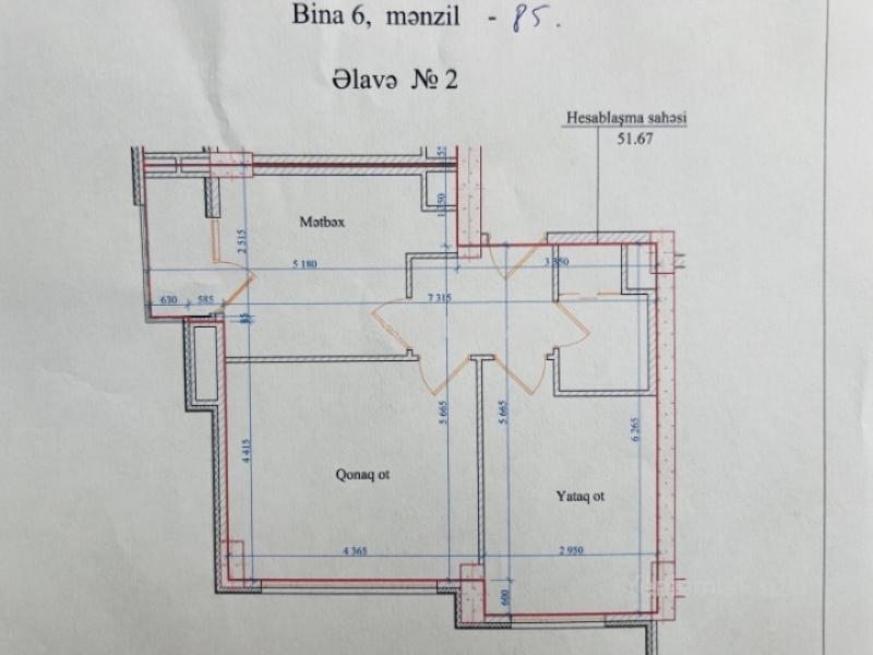 İnşaatçılar metrosu, Satılır 2 otaqlı 52 m² Yeni tikili