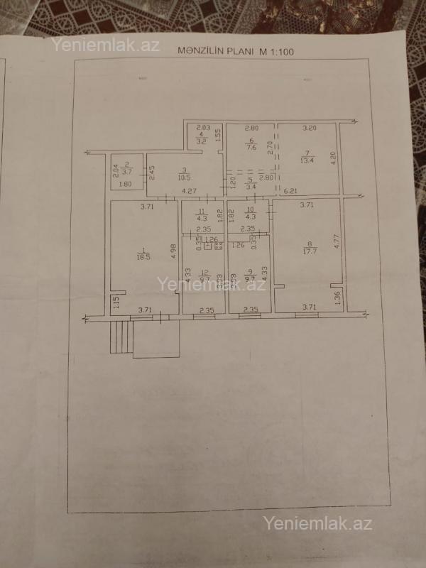 Sumqayıt şəhəri 9 m/rayon 9 mərtəbəli Kiev layihəli binanın 1 mərtəbəsində yerləşən , sahəsi 126m.kv (sənəddə 106m.kv.) olan 5 otaqlı mənzil satılır. Mənzil orta təmirlidir , qaz-su-işıq daimidir , yerdən cox hündürdür , zirzəmi qurudur. Mənzil şəhərin mərkəzində , Heydər parka yaxın ərazidə yerləşir. Sənədlər qaydasındadır , çıxarış-kupça var. Son qiymət mənzilə baxışdan sonra müzakirə olunacaq , endirim var. Təcili satılır. Ofis haqqı 1%.Sumqayıt 9 m/rayon.