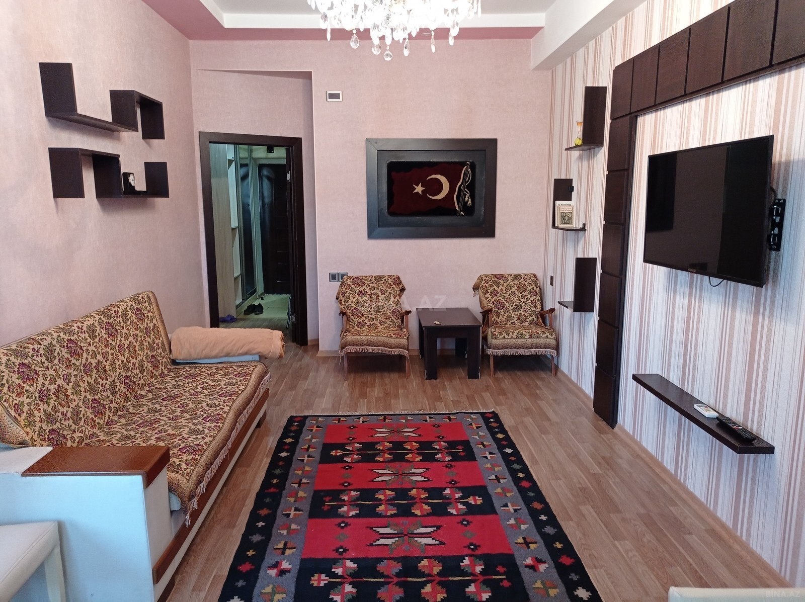 Serq Bazarin yani 1otaqdan 2 duzelme butun mebel avadanliqlari var.Kombi sistem.