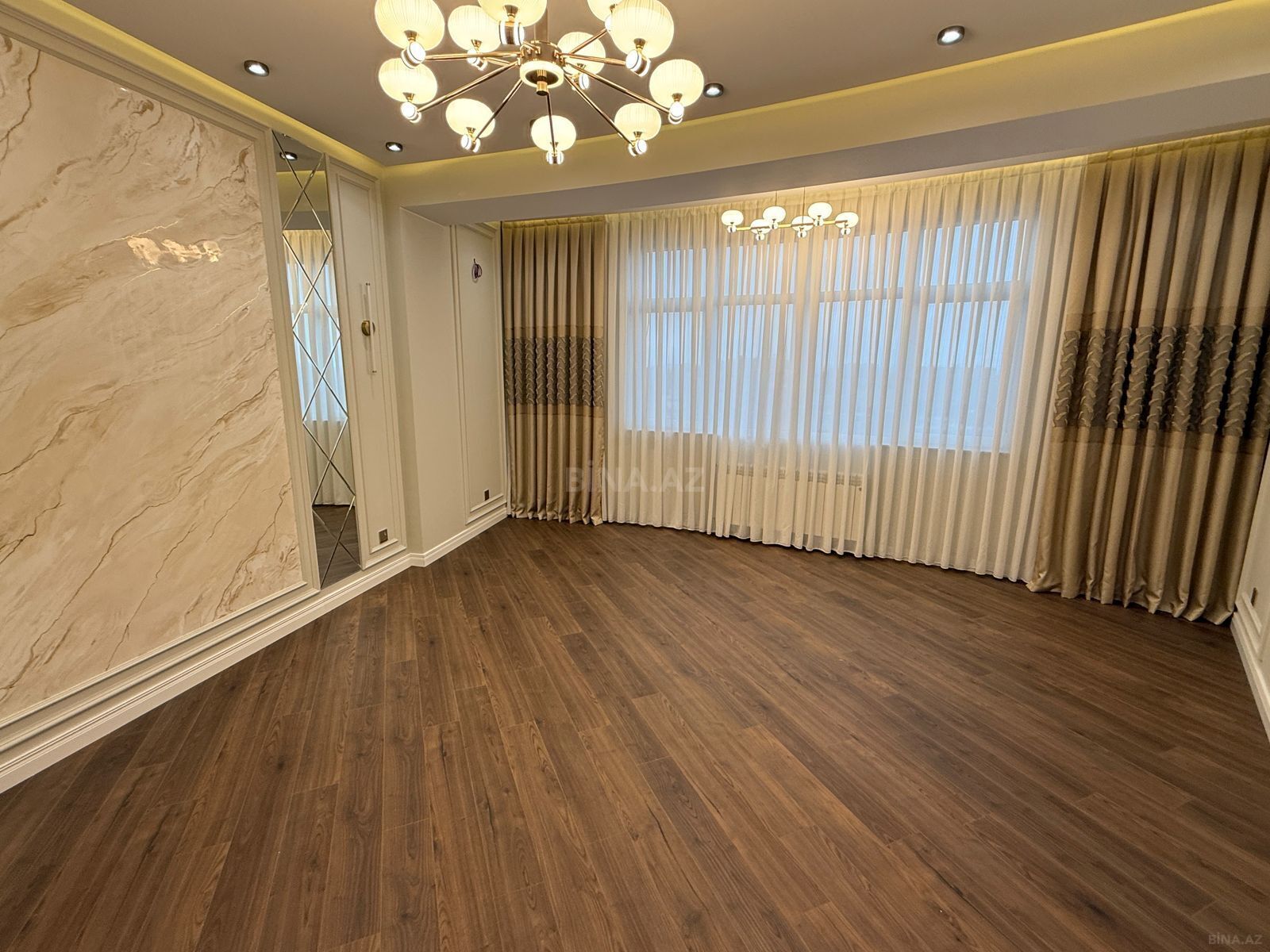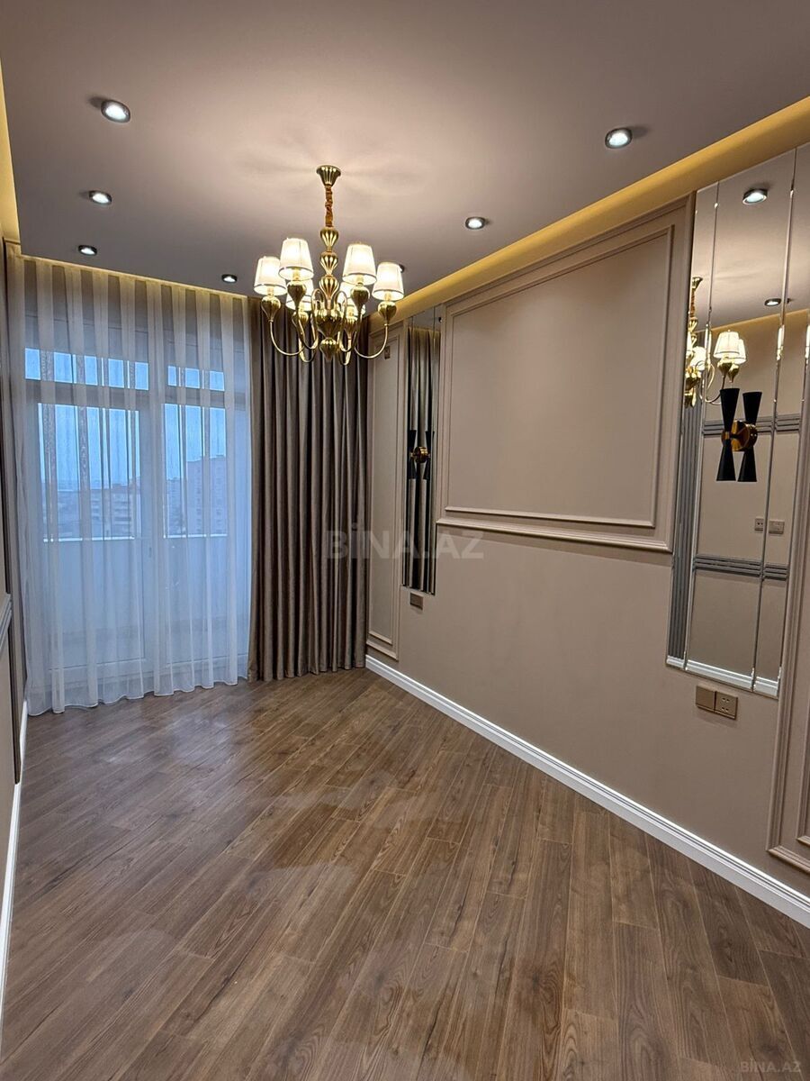 Bina Genclikde Ayna sultanova parkinin sonunda yerleshir. Menzil tam yelceken sheher menzerelidir, 2 yataq otagi,1 qonaq otagi, metbex ve 1 boyuk sanuzelden ibaretdir. Kolidor, metbex ve sanuzelde isti doshemedir. Diger otaqlarda parketdir. Gorunduyu kimi ev yeni temir olunub ve yashayish olmayib. Menzilde ishiq su qaz daimidir. 2 suretli lift ve yer alti dayanacaq var. .