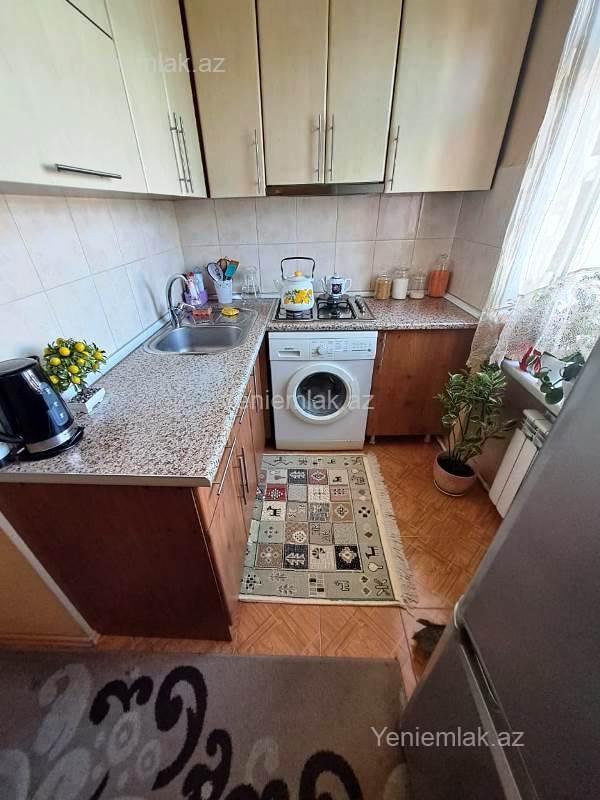 Nizami rayonu,8-ci km.qəsəbəsi,Q.Qarayev metrosu,Q.Qarayev pr.,Sevinc MaaL-ın yaxınlığında, 5 mərtəbəli Xruşov laihəli daş binanın 5-ci mərtəbəsində ümumi sahəsi 50 kv.m. olan yaxşı təmirli 2 otaqlı mənzil bəzi əşyalarla birlikdə satılır.Sənədləri qaydasındadır,çıxarış(kupça)var.Su,işığ,qaz daimidir.Sanitar qovşaq mənzildə biryerdədir,təmirlidir.Mənzildə istilik sistemi Kombidir. Mənzilin seyf qapısı,plastic pəncərələri,laminat döşəməsi var.Bina infrastruktur baxımdan yol kənarında,yaxşı bir ərazidə yerləşir,hər bir yerə yaxındır.Q.Qarayev m.Q.Qarayev pr.