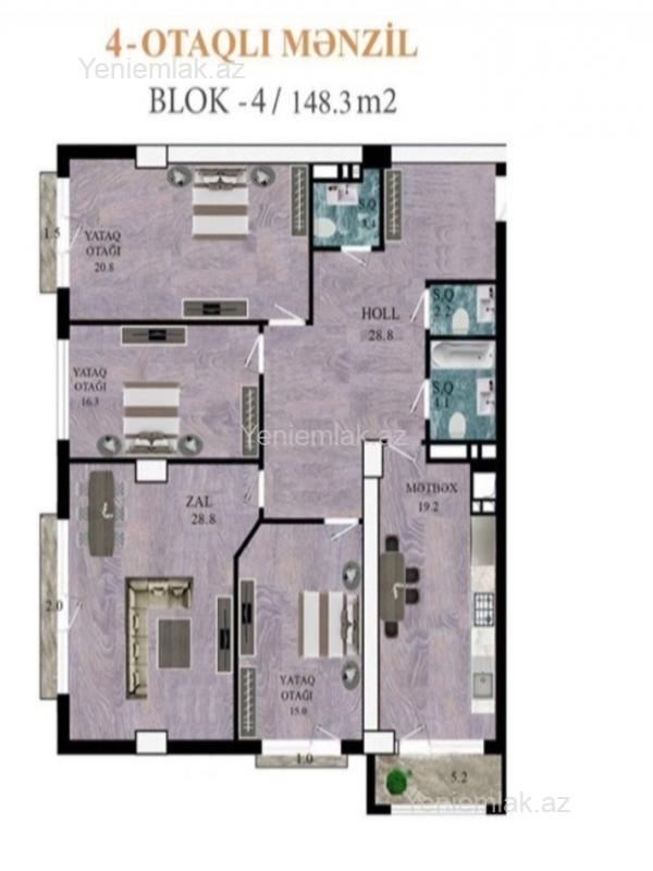 28 May metrosu, Satılır 4 otaqlı 148 m² Yeni tikili